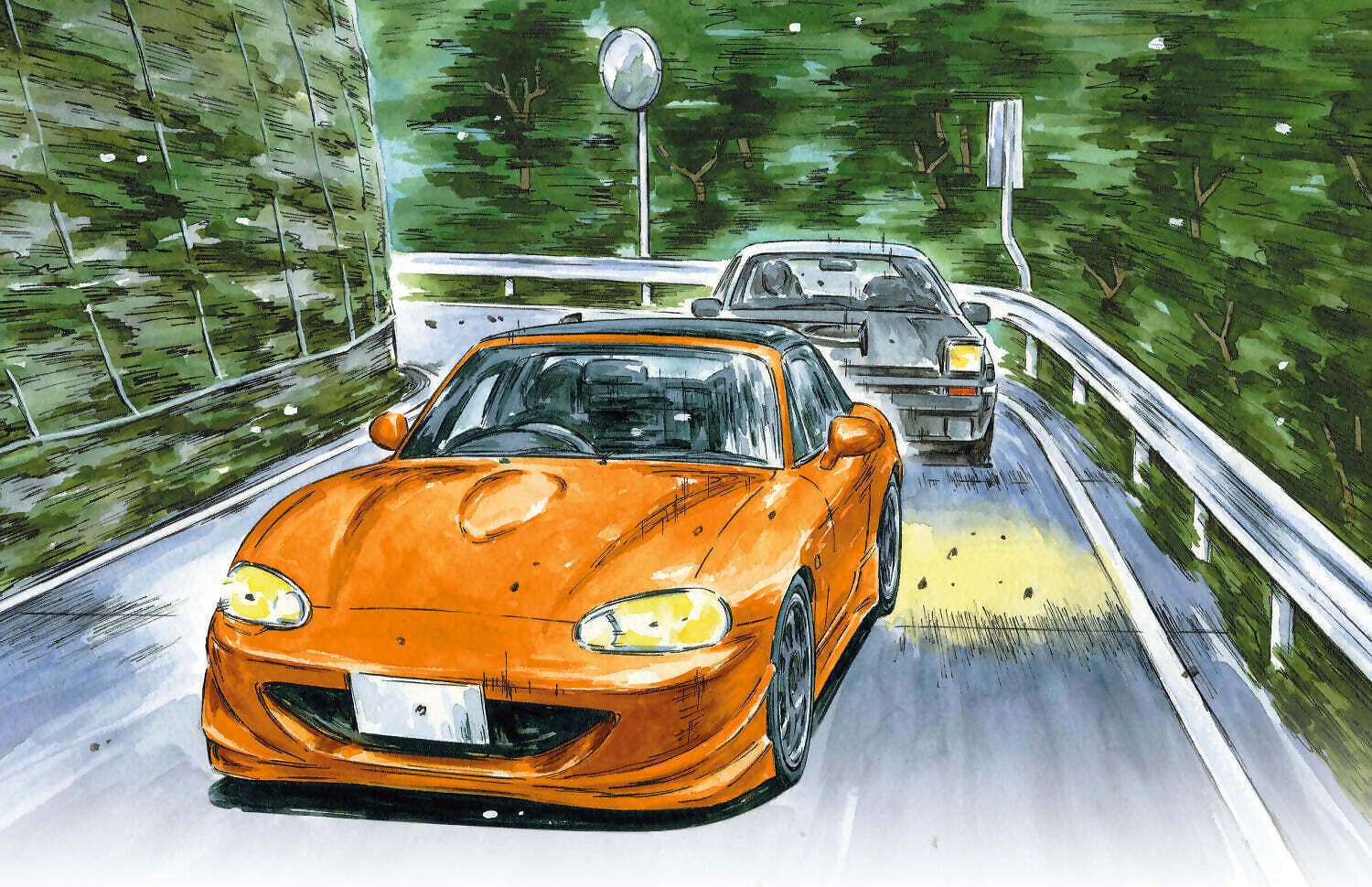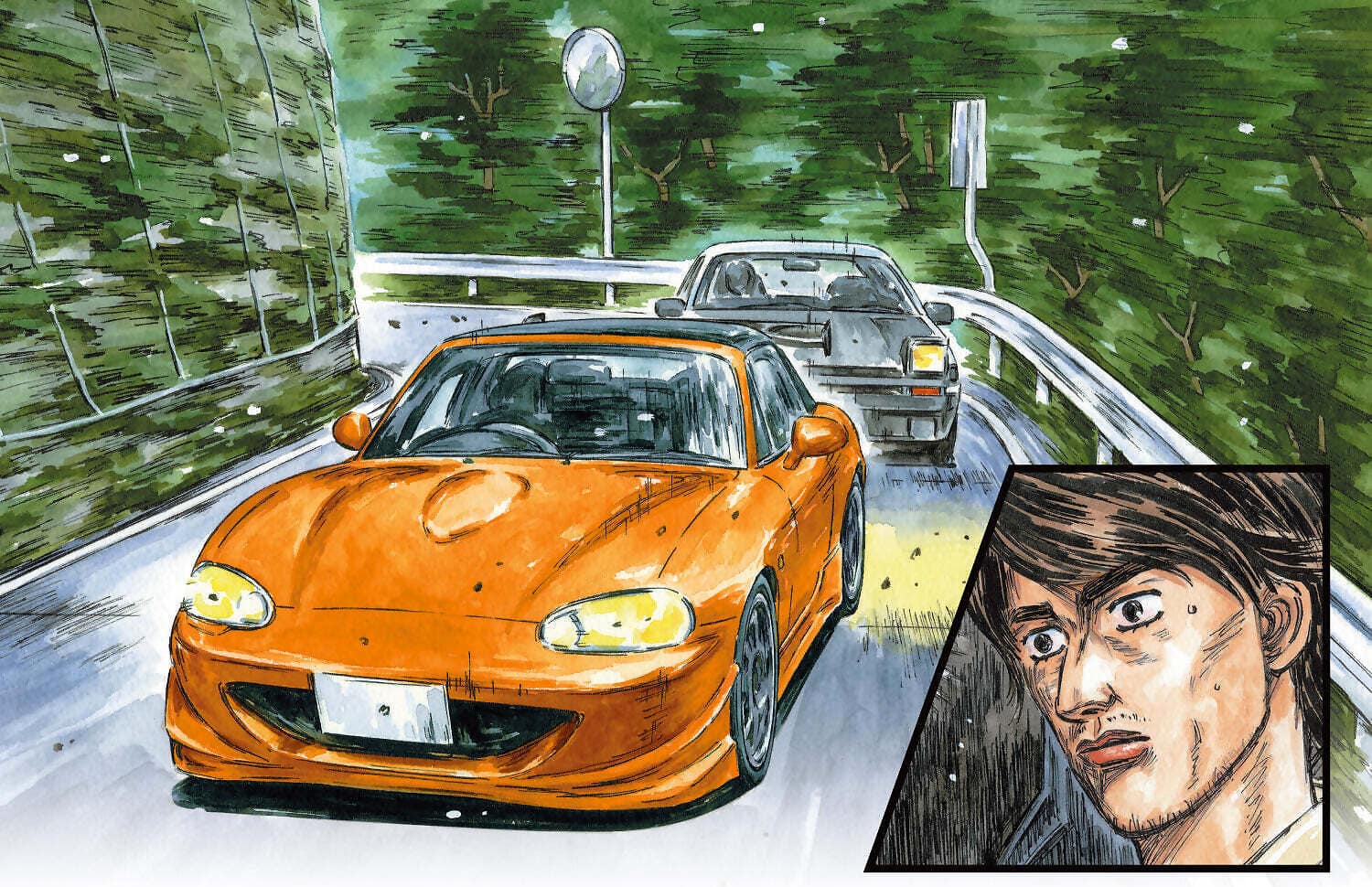 The roadster of Satoshi Omiya, the leader of Team 246 and a former professional racer in the Kanagawa area. Initial D, the downhill racer of Team 246 in Kanagawa, Satoshi Omiya, drives an orange Miata NB8C with a large rear wing. He loses the race when he spins out after his car’s rear wing breaks.
