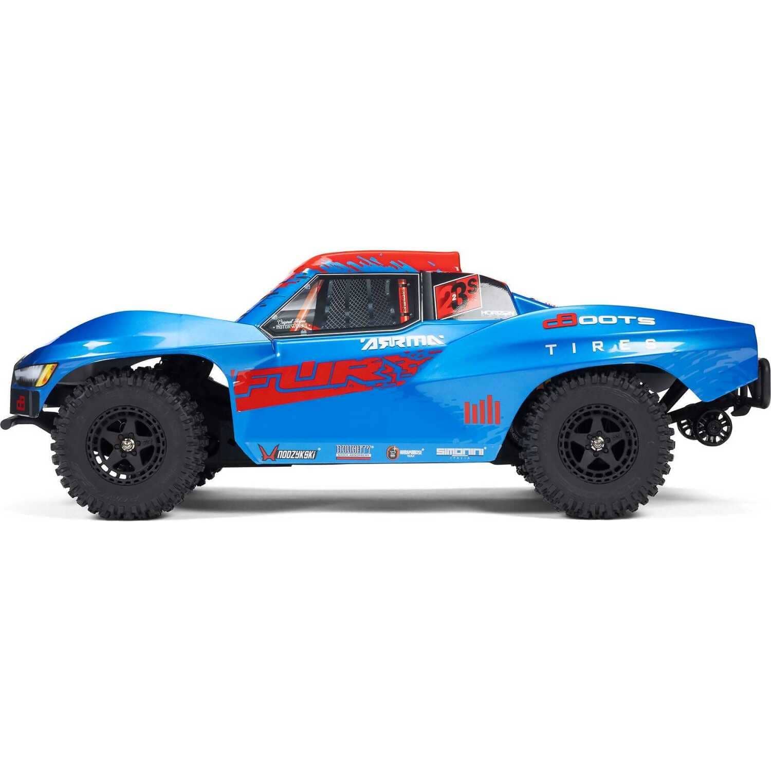 Why compromise? With the 1/10 scale ARRMA FURY 223S BLX 2WD, you can have everything you want in your brushless vehicle — ready-to-run simplicity, style with attitude, the toughness to take hits, and the power to go faster as your driving skills improve — all at a price you can afford. Ready out-of-the-box for 2S or 3S power, this short course truck delivers premium performance without a premium price.