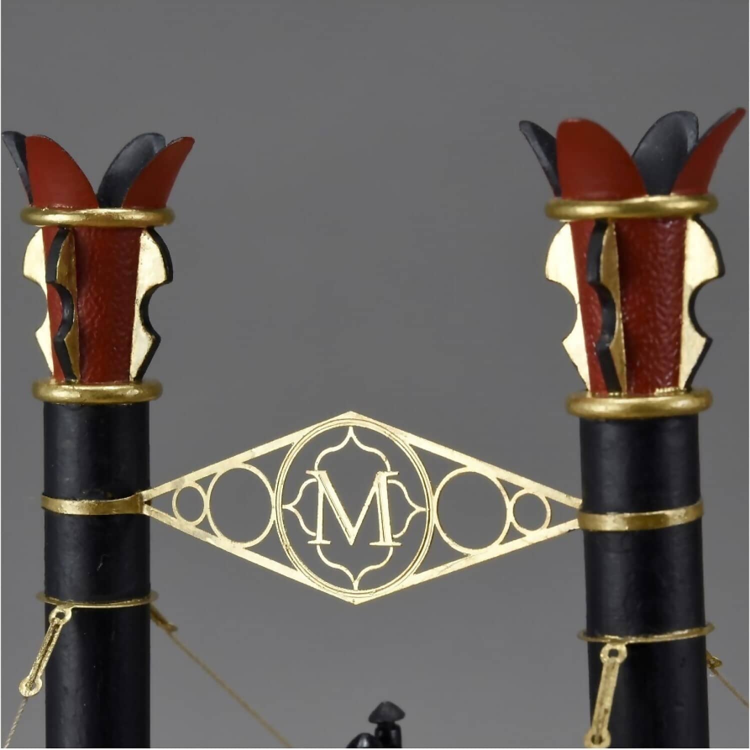 This comprehensive kit includes die-cast, brass, and wooden fittings, adhesive cloth flags, and a wooden display base with a nameplate. Modellers can follow a full-colour step-by-step guide and video tutorials to complete the build with confidence. Once assembled, the finished model measures approximately 660 mm in length, 130 mm in width, and 192 mm in height, making it a striking centrepiece for any collection.