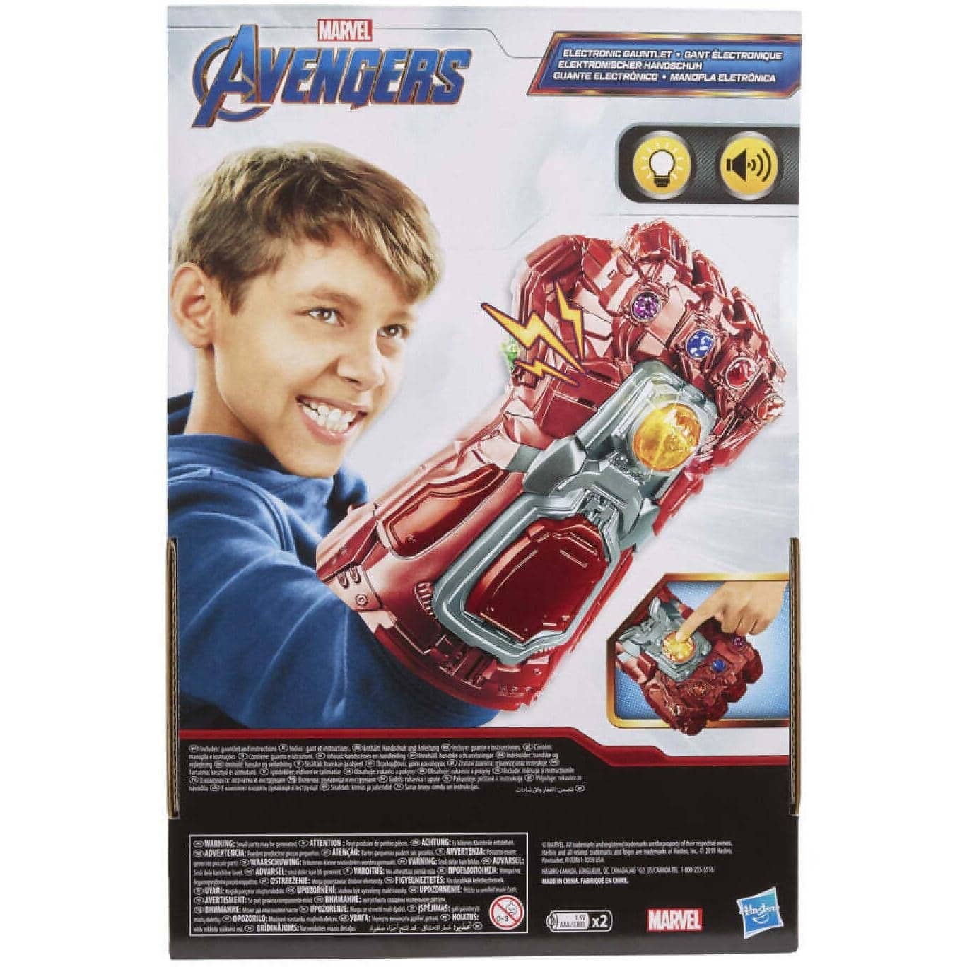 INFINITY GAUNTLET WITH LIGHTS AND SOUNDS: Imagine controlling the universe for with the Infinity Gauntlet Electronic Fist, featuring electronic lights and sound FX inspired by the Avengers: Endgame movie