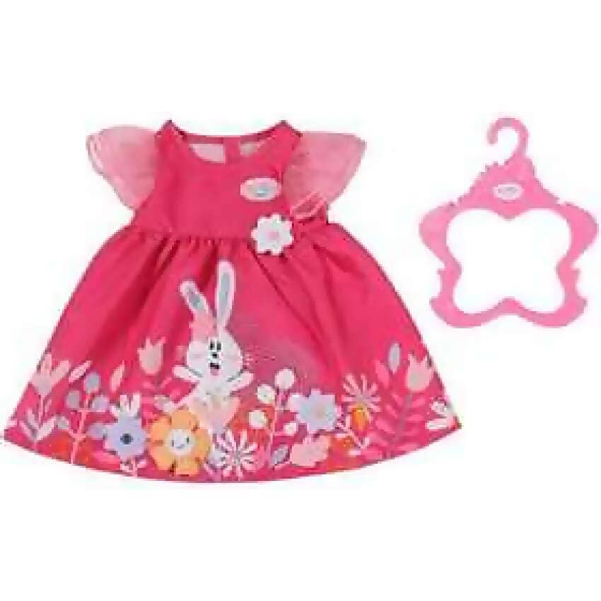 For when their roleplay takes BABY born off on a special occasion, this stunning pink dress, with its bunny-and-flowers design, is just perfect!