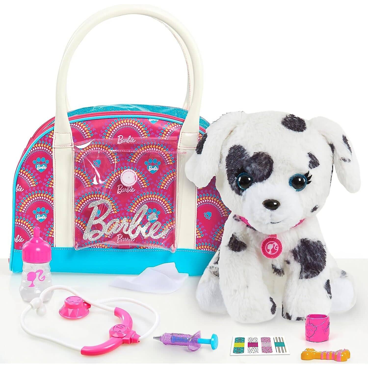 • You can be a Pet Vet! Take great care of your precious pet friend with the Barbie Kiss and Care Pet Doctor Set! This caring set features a stylish pet carrier and soft Dalmatian puppy plush that really interacts with you!