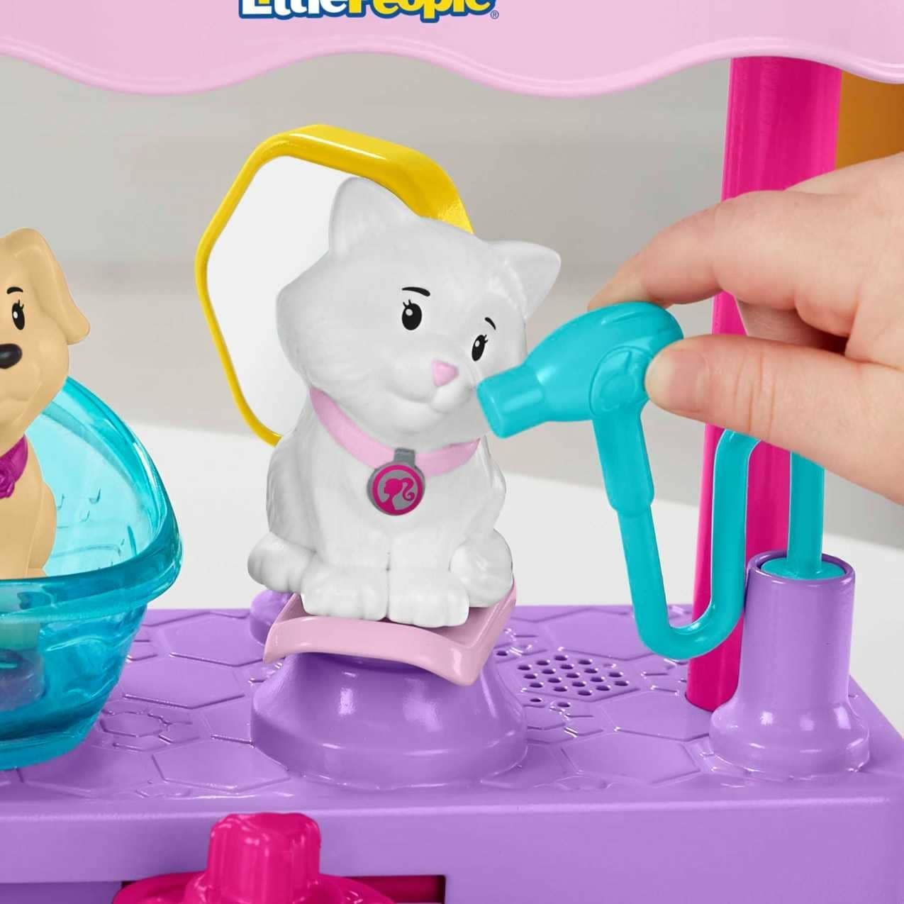 - Barbie®-themed Little People® pet care playset with 2 floors of play for toddler-friendly pretend play!