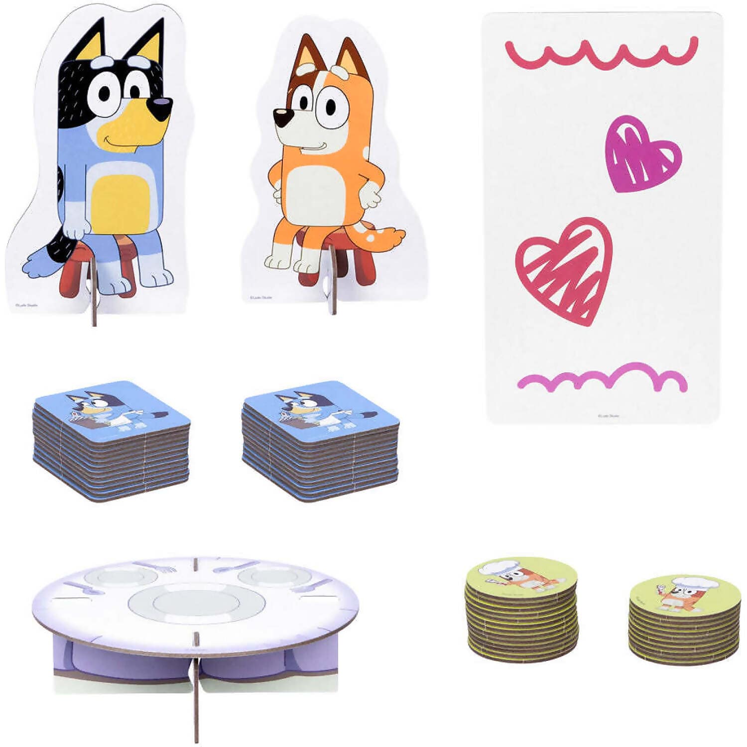 Bring the fun of Bluey’s “Fancy Restaurant” episode to life with the Bluey – Fancy Restaurant Game! Kids join Bluey and Bingo as they match food cards to help Dad prepare a special dinner for Mum. With a table and Mum and Dad figures included, little ones can dive into imaginative roleplay while building memory and matching skills.
