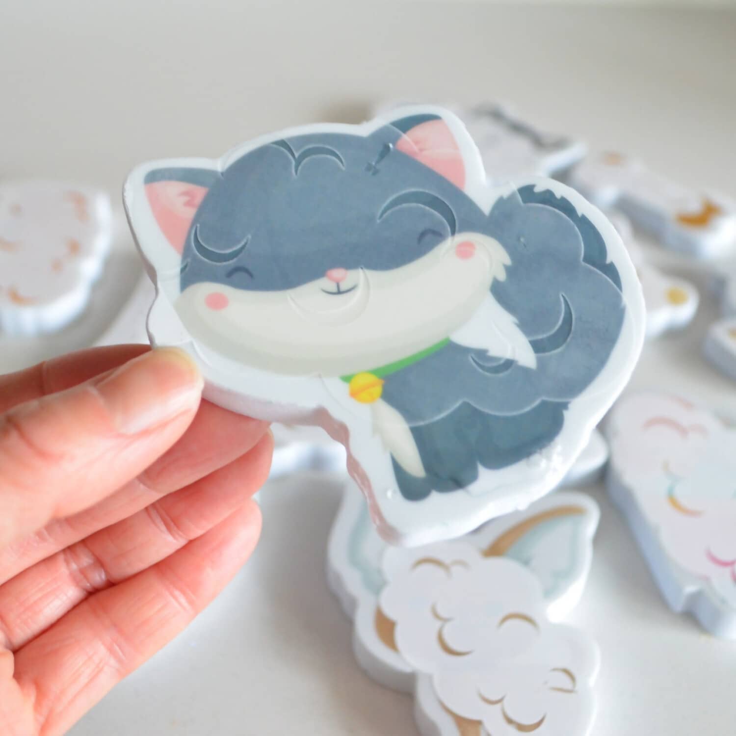 The animals have had a messy day and need your help to get clean. Dunk, splash or pour warm water on the bath stickers and watch them ‘clean’ to reveal the furry friend underneath.