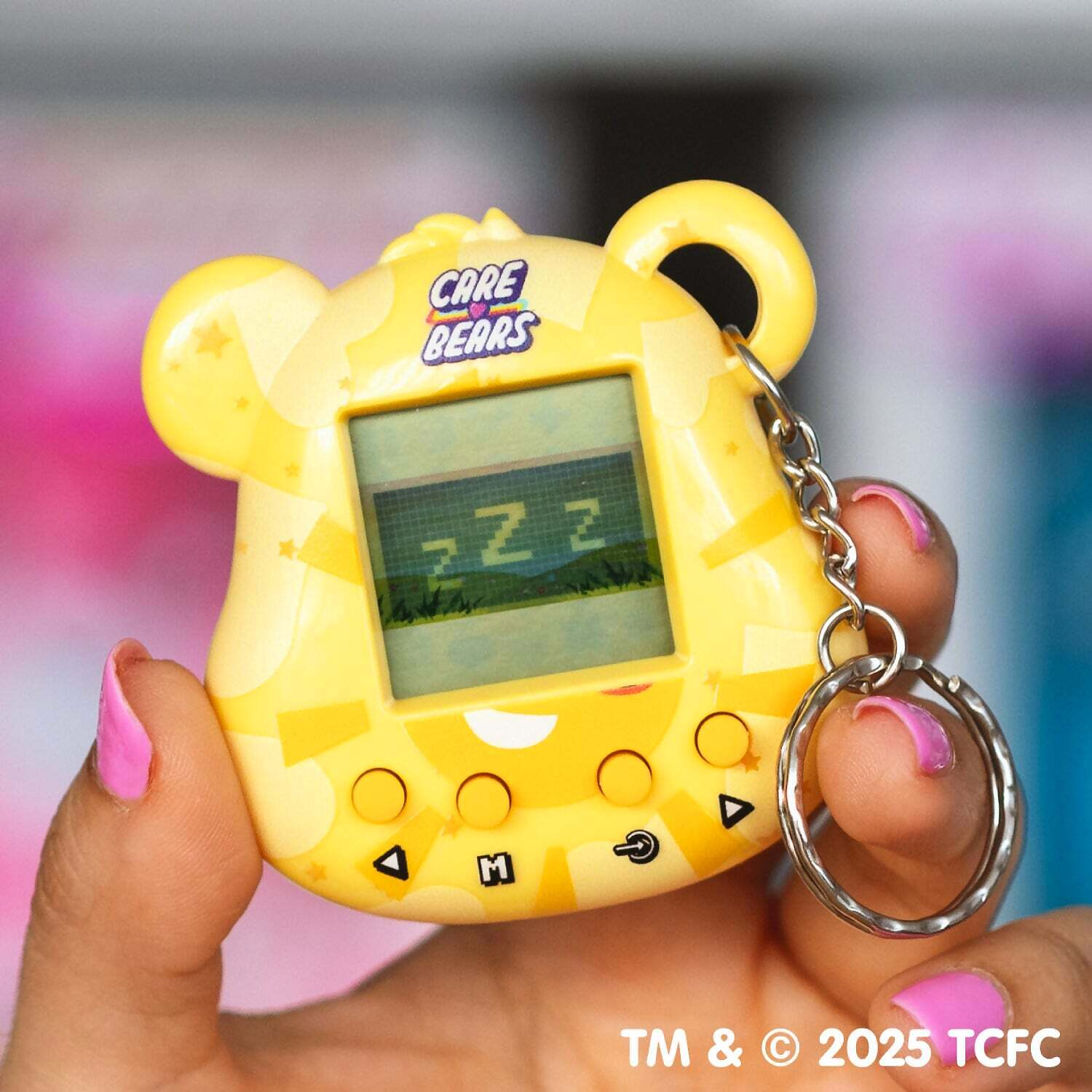 - Retro pixel screen with bright Funshine Bear animations