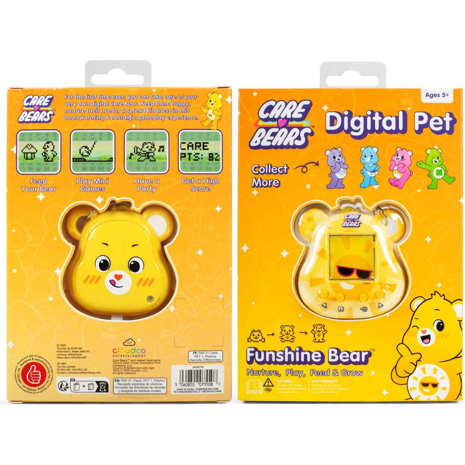 Funshine Bear brings a bright and cheerful feel to this sweet digital pet. Kids can look after him through simple feeding moments, small care tasks, and fun mini games that keep the play warm and happy. His sun belly badge appears in cute pixel art that gives the toy a cosy retro touch.
