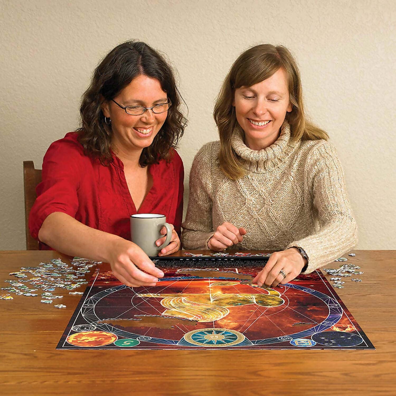 Each 500 piece Zodiac puzzle includes the constellation, symbol, ruling planet, polarity, modes and stones.