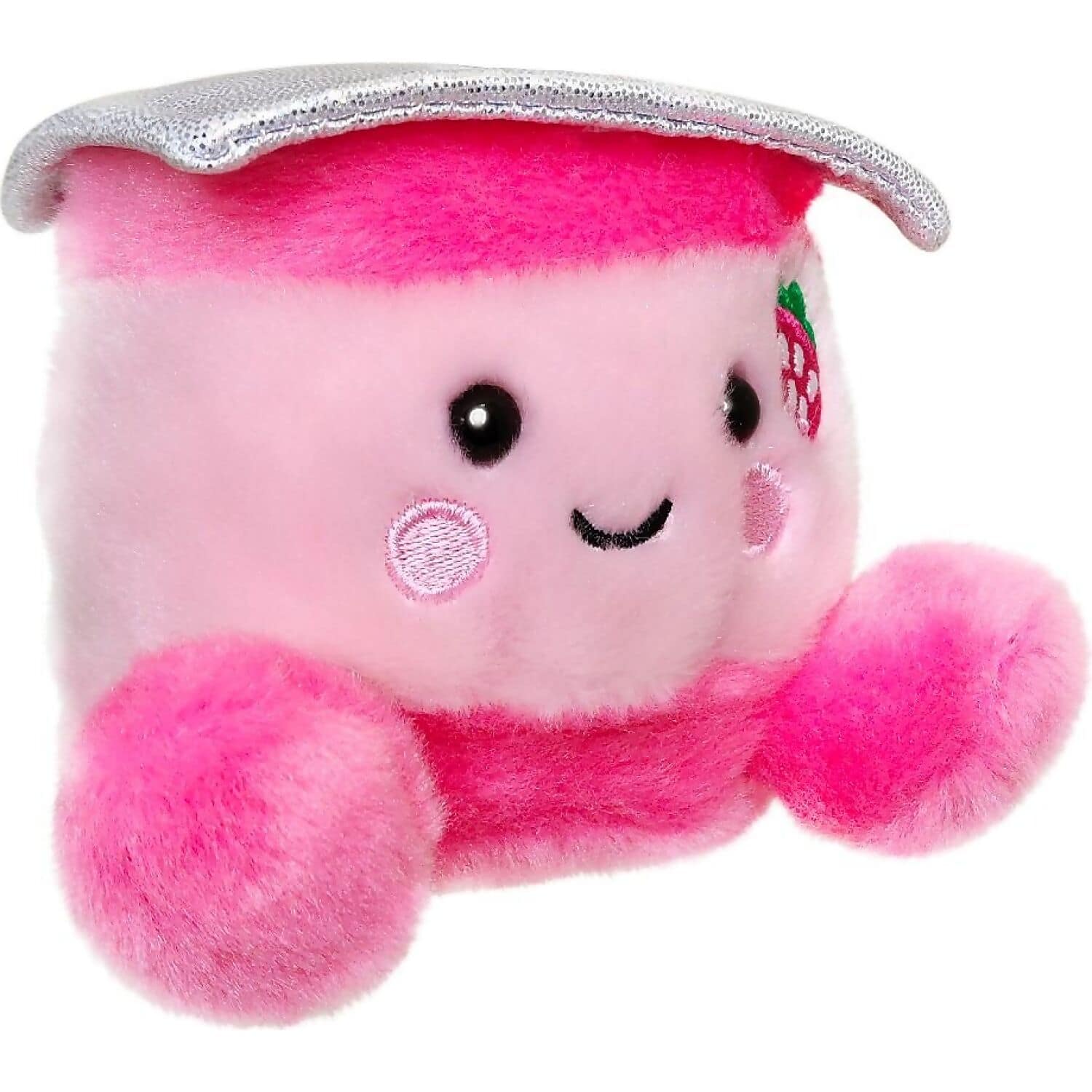 Yona Yogurt is a delightful plush toy from the Cotton Candy Palm Pals collection. This adorable plushie resembles a cute yogurt cup, complete with a sparkling silver lid and a soft pink body. With its happy face and little strawberry decoration, Yona Yogurt brings a touch of fruity fun to anyone who holds it.