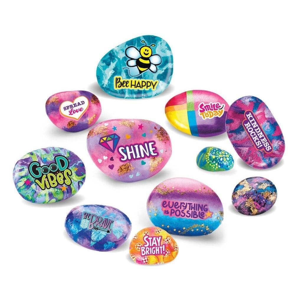 Create Positive, Encouraging Messages to Share! Spread the Love One Rock at a Time! Art from the Heart! Create your own works of art with this Shimmer ‘n Sparkle rock art painting kit. These natural blank canvasses are open to endless design and creativity possibilities. Once these little gems are complete, they are perfect for decoration, gifts, paperweights, or brightening a friend’s day.