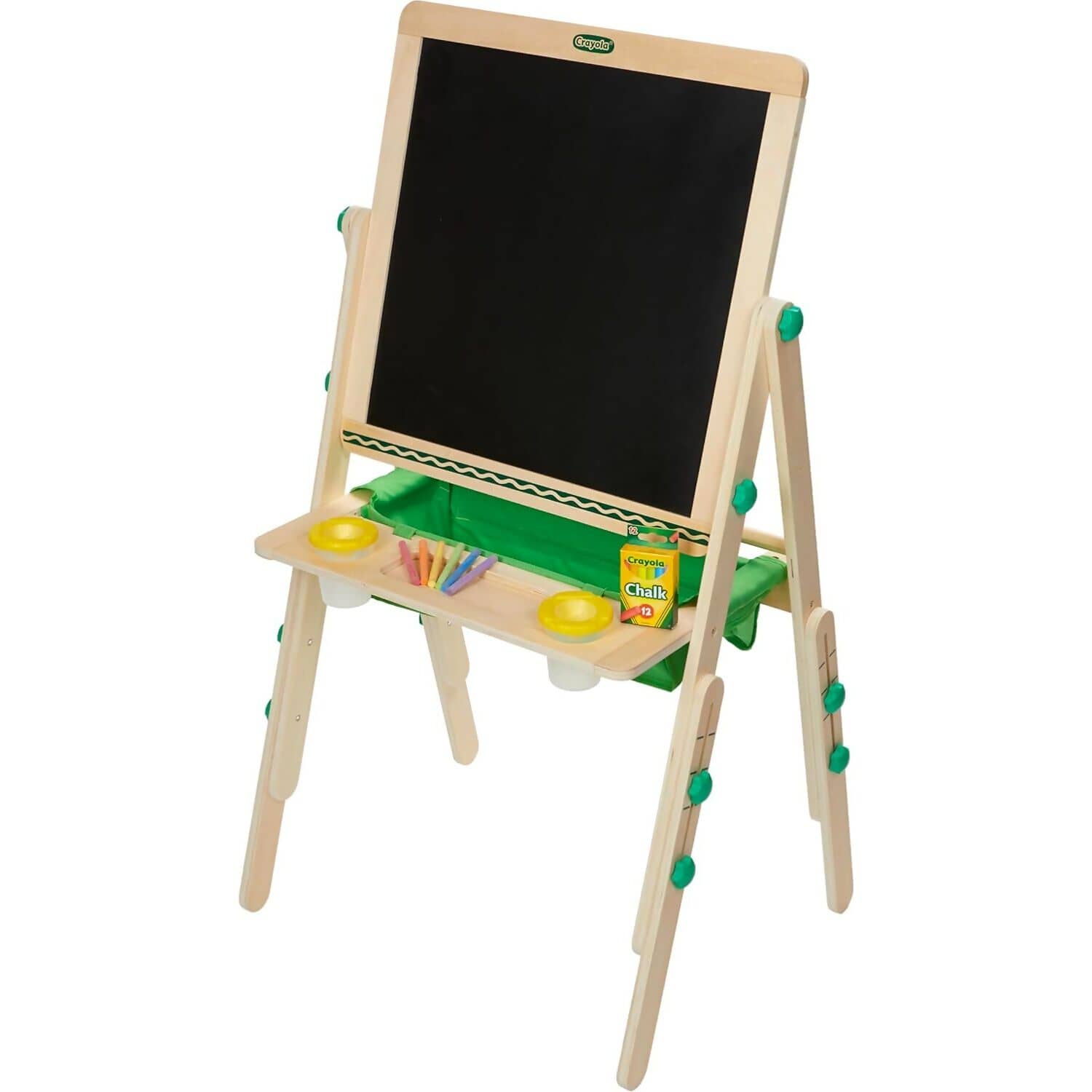 Crayola – Deluxe Wooden Kid’s Art Easel Dual Sided Dry Erase & Chalkboard