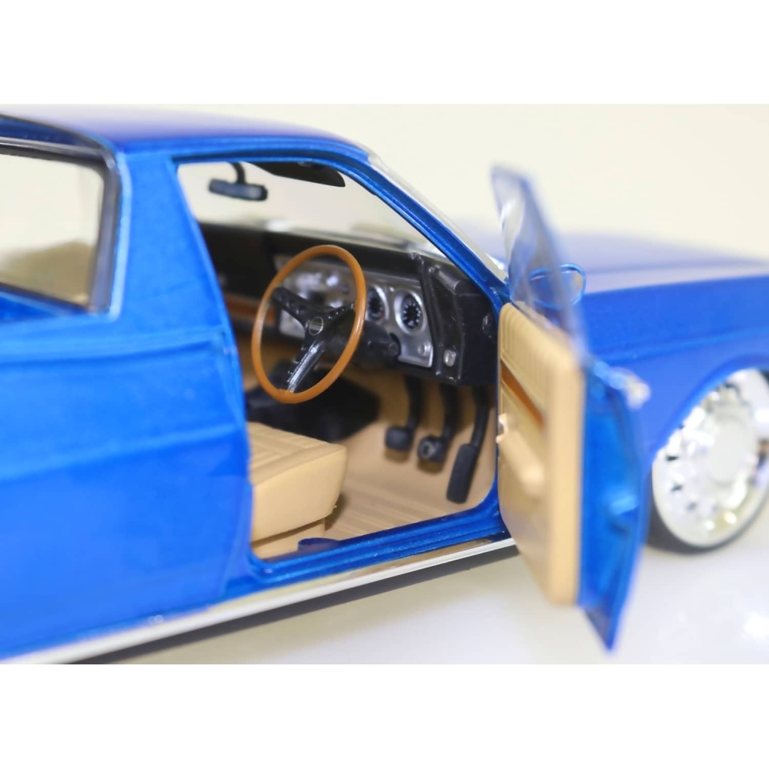 The DDA Collectibles 1:24 Scale Blue Custom XY Ford Falcon Ute is a striking tribute to Australian automotive ingenuity, blending classic styling with modern muscle. Finished in a vibrant metallic blue, this diecast model features a warm tan interior and low-profile 12-slot wheels for a sleek, aggressive stance. Its opening doors, bonnet, and tailgate reveal a highly detailed interior and a custom supercharged Barra engine.