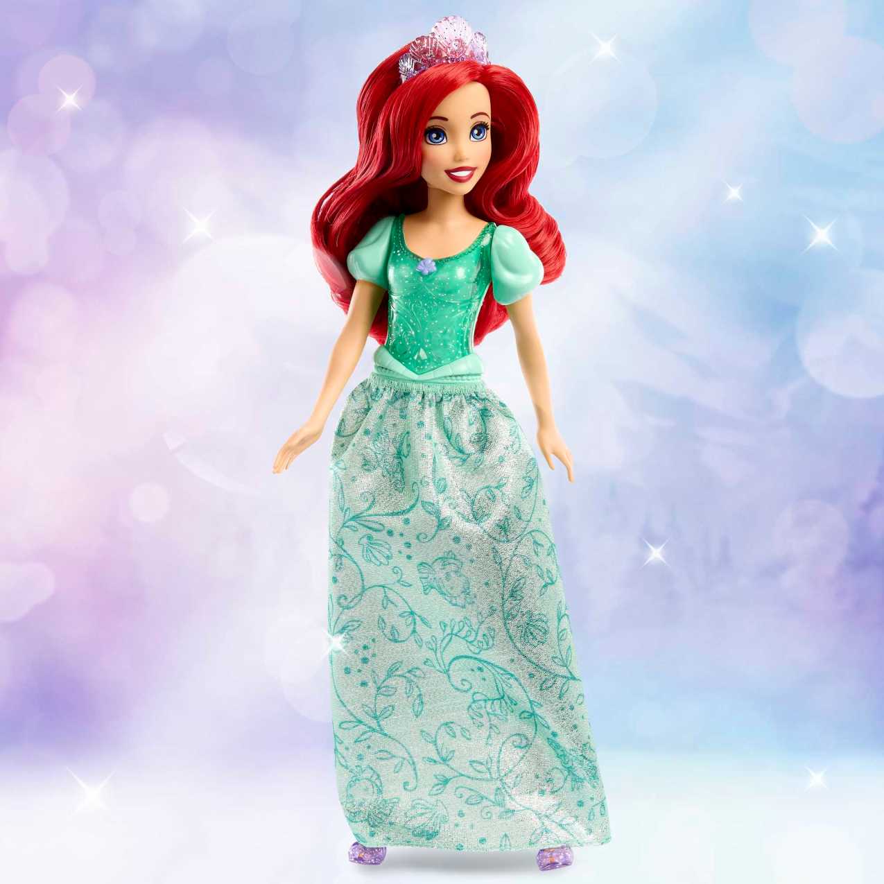 Meet this Ariel doll, inspired by the determined and free-spirited princess from Disney’s The Little Mermaid. This posable fashion doll is shown in a sparkling outfit and accessories that include shoes and a tiara. In her signature look from the movie, this Ariel doll is ready for any adventure! Doll cannot stand alone. Colors and decorations may vary.