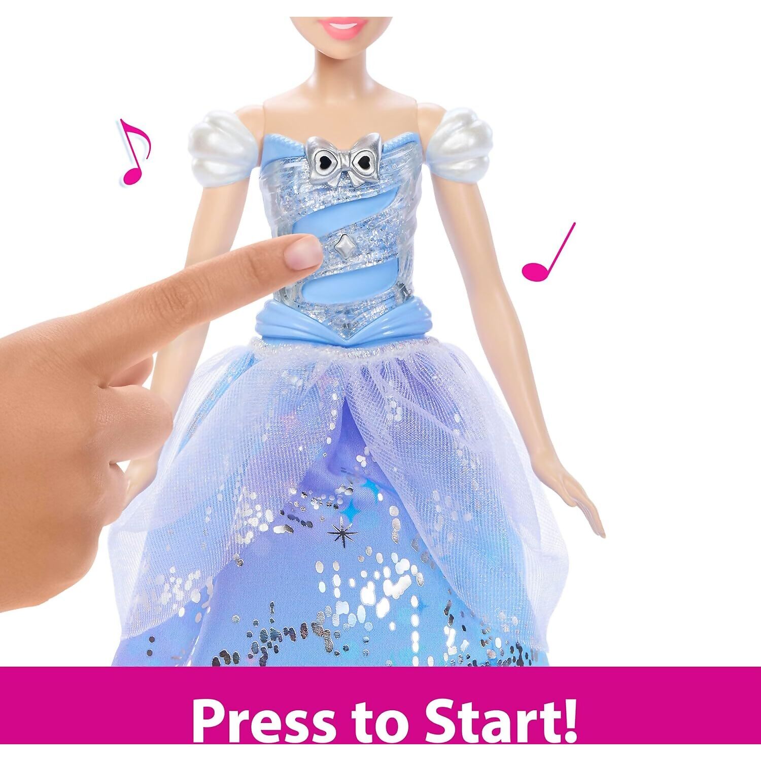 Designed for imaginative play, this beautifully detailed doll features a removable foil-accented skirt, a sparkling tiara, and elegant shoes. The interactive wand allows children to activate four different light and sound patterns, enhancing the storytelling experience. Perfect for Disney fans, this Cinderella doll encourages creativity and brings fairy-tale dreams to life.