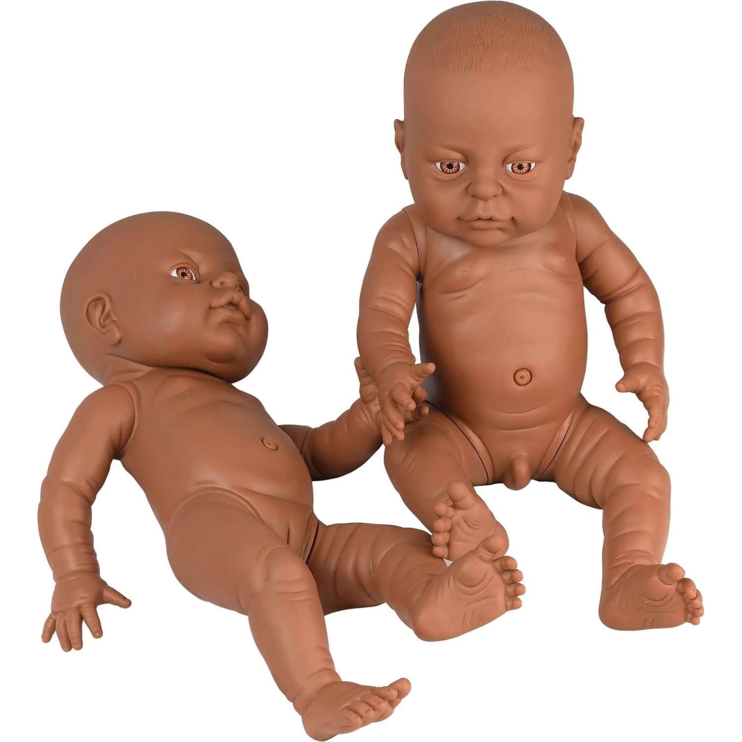 - Realistic moulded features with brown eyes
