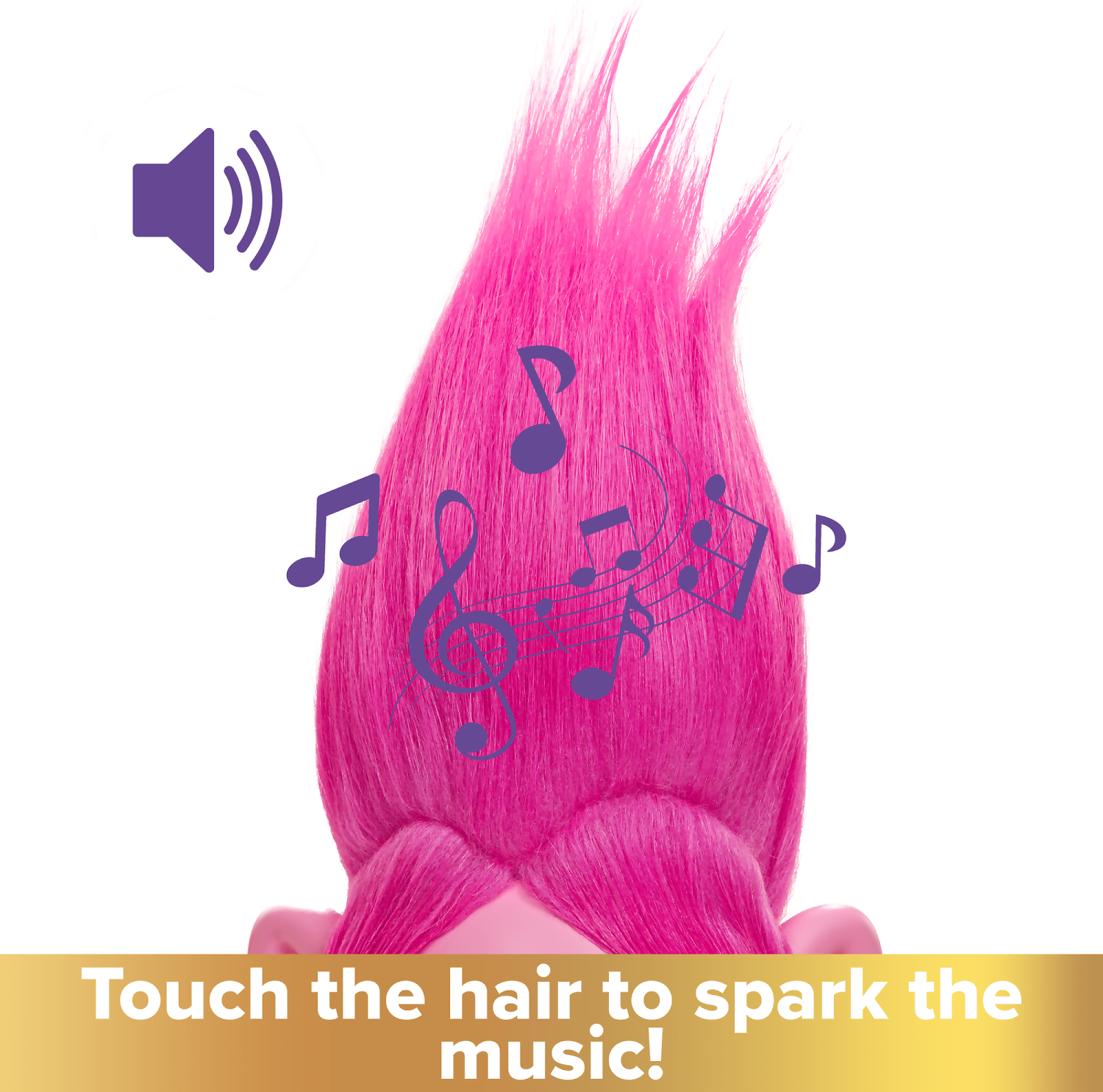 • Rainbow HairTunes™ Poppy doll features extra-long pink hair that lights up and plays music and sounds from the movie DreamWorks Trolls Band Together!