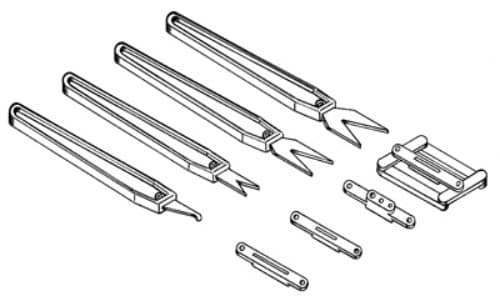 Centers & guides for perfectly aligned slots for any hinge. 3 blades fit No. 2 X-Acto handle. 3 snap-on jig guides. 1 per package.