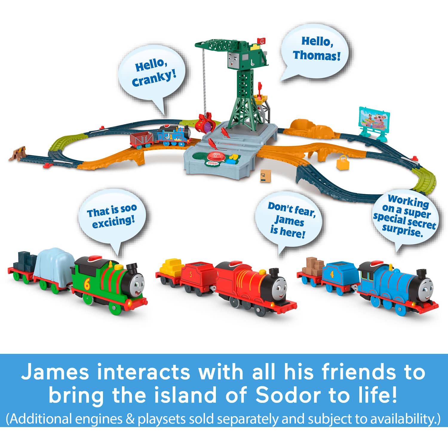 - When one talking engine meets any of the others, the characters will recognize and talk to each other! (Each sold separately and subject to availability.)