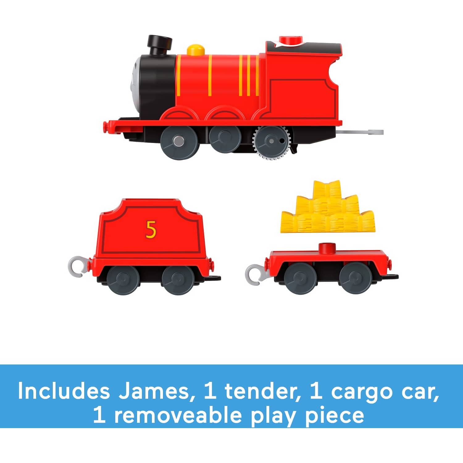 1 engine, 1 tender, 1 cargo car, 1 play piece