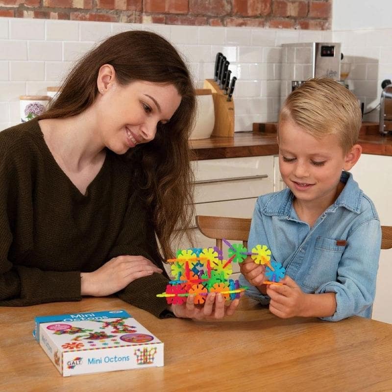 A mini construction kit, based on our ever popular First Octons. Made from tough plastic for durability, the mini octagonal pieces interlock easily to make a wide variety of exciting models. Ideal for travel.