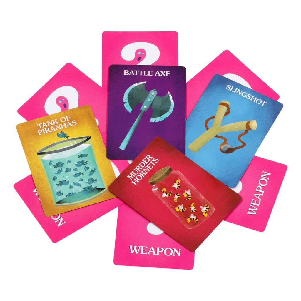 Be the first to solve the crime through a process of elimination by asking clever questions and gathering evidence. Identify which suspect had it in for you, what wacky weapon they used, and why they wanted you out of the picture. Use your detective skills and be the first to figure it out in this spirited game of Boo-Dunnit!