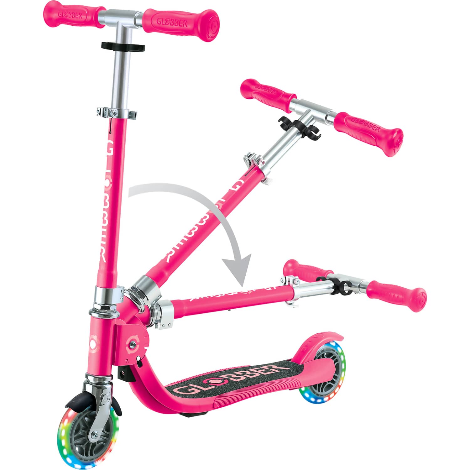 Globber – Flow Foldable Junior Scooter With Lights – Pastel Pink / Fuchsia