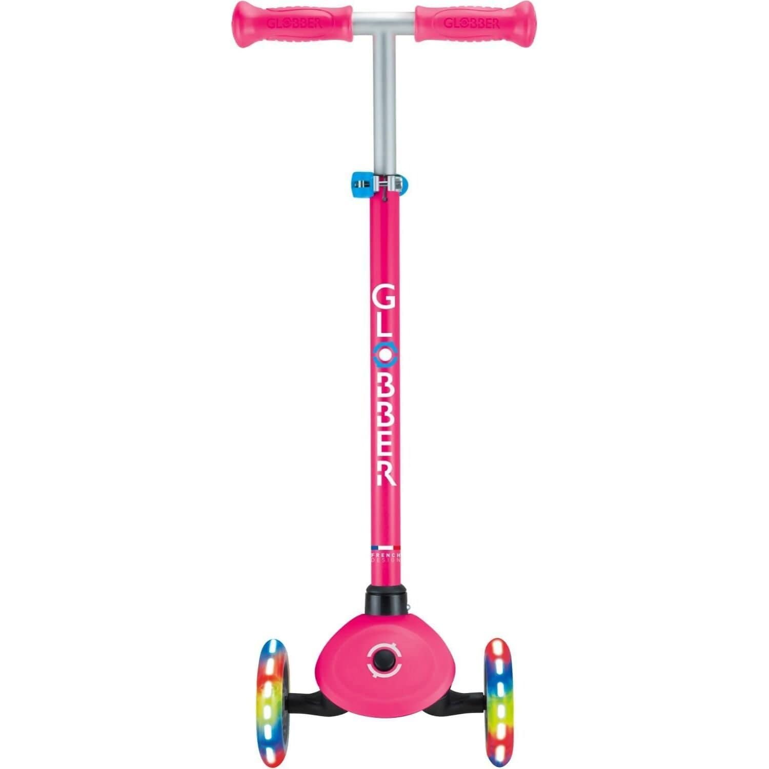 .Globber Primo V2 Scooter With Lights And Griptape – Fuchsia Pink With Sky Blue