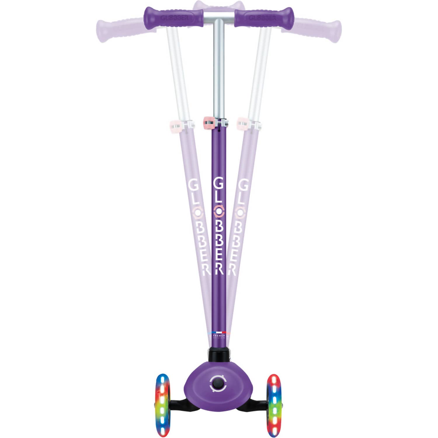 A 3-wheel scooter with lights equipped with a 4-height adjustable T-bar, patented steering lock system, LED light-up wheels, and a low bi-injection deck design, PRIMO PLUS LIGHTS is packed with all the features your child needs to have fun and learn balance and coordination, all while staying safe with everyday glow-tastic scoots.