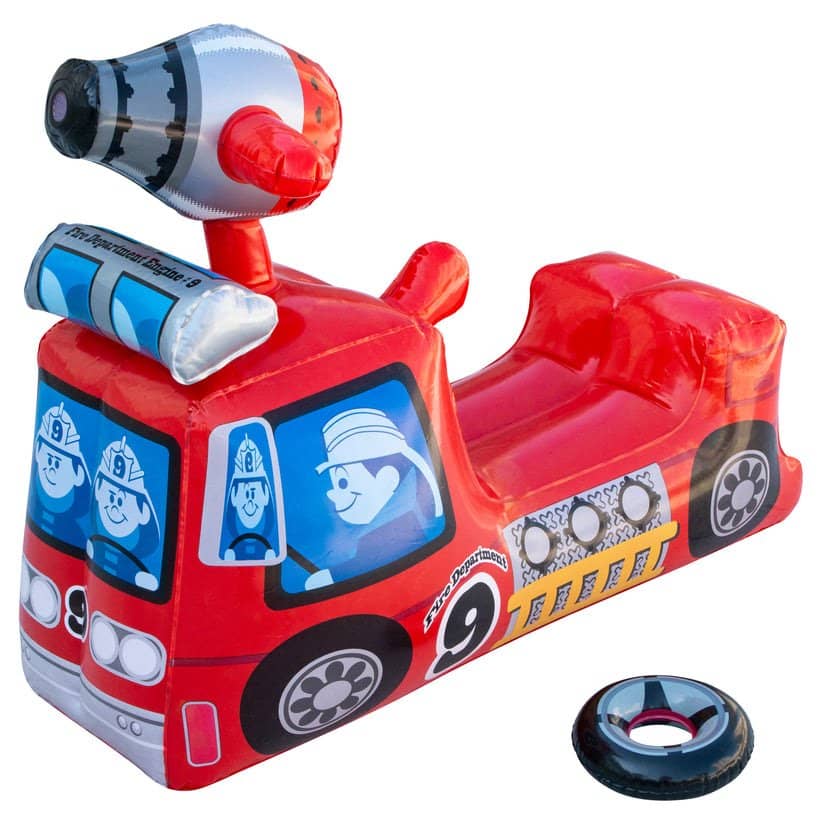 – Inflatable ride-on sprinkler.