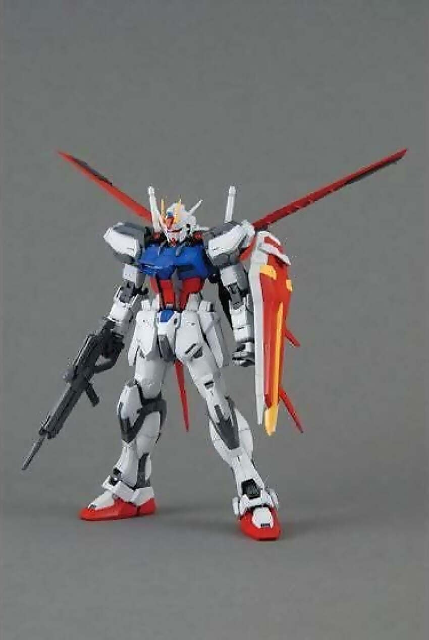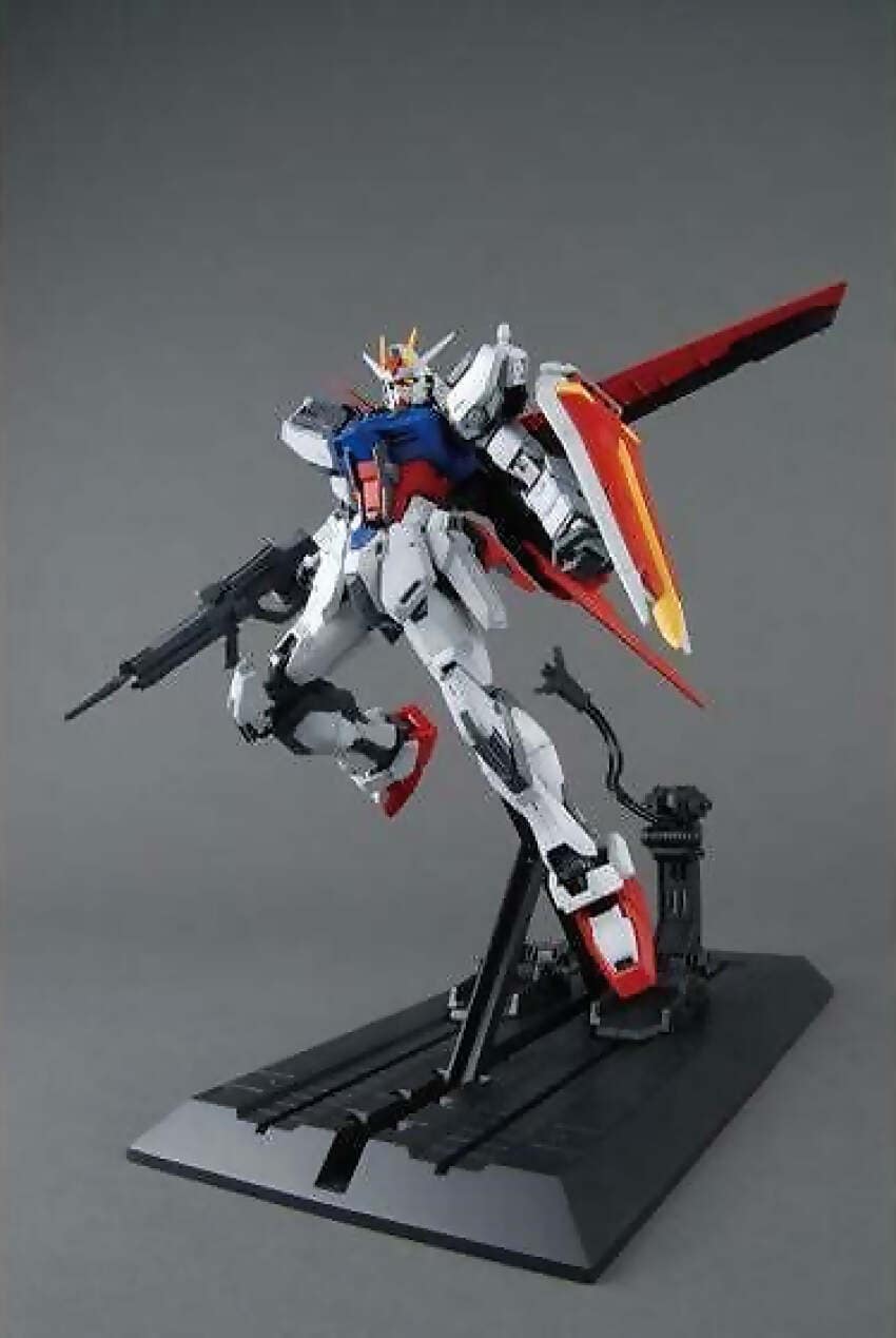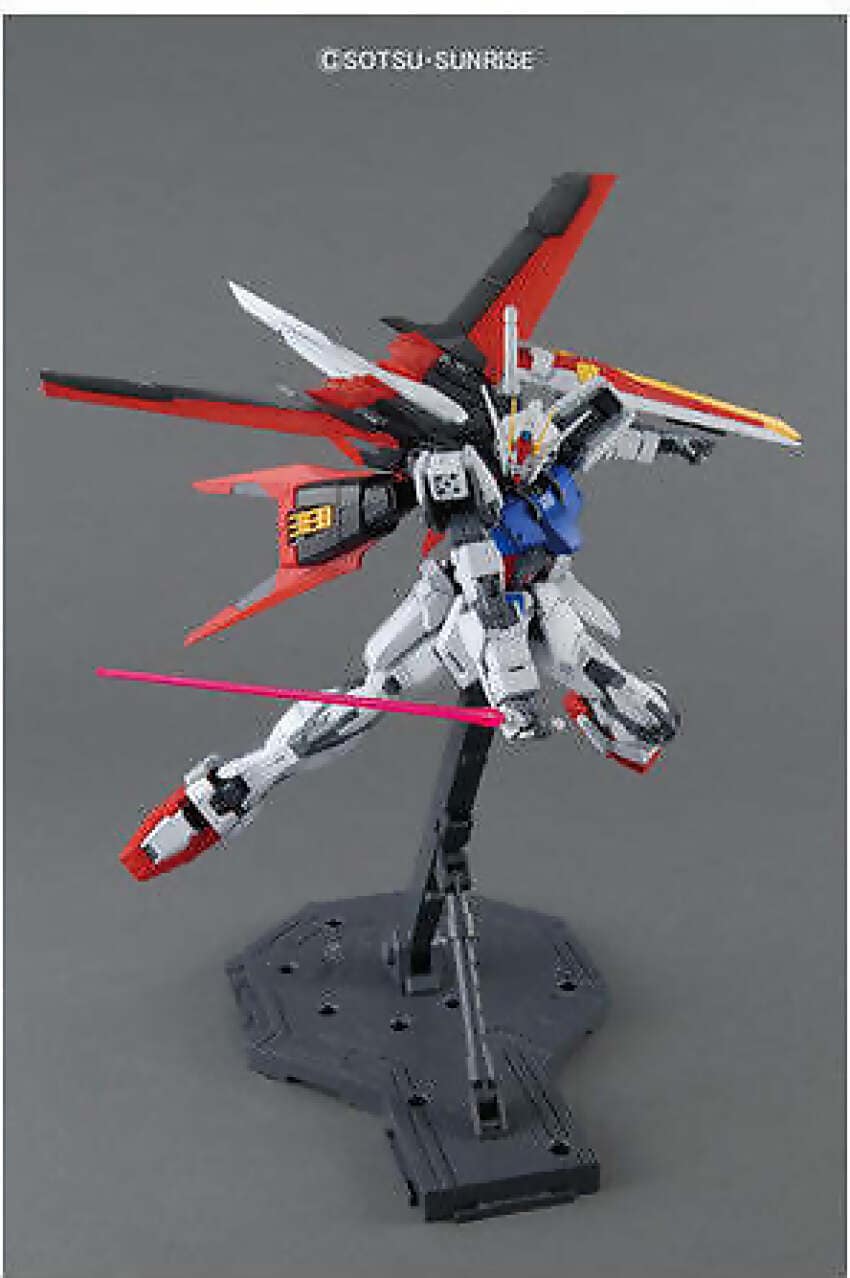 Designed following the newer proportions, this MG reflects the sort of forward-thinking redesigns that characterize the MG series. Includes Beam Rifle and folding Armor Schneider knives. Can recreate the Perfect Strike Gundam using the MG Sword Launcher Striker Pack! (Sold Separately). Can be mounted with most other Striker Packs, and activated with an included battery pack!