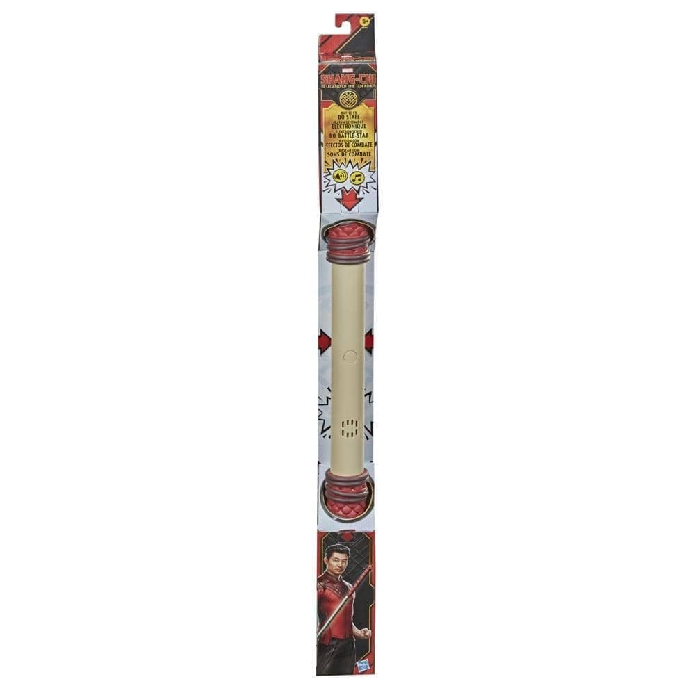 Sale!BATTLE SOUND EFFECTS. Kids can enjoy hearing the sounds of this awesome Battle FX Bo Staff role play toy inspired by the Marvel movie Shang-Chi And The Legend Of The Ten Rings. WEAPONS-CLASHING SOUNDS CHANGE. Kids have the power to create martial arts battle sounds that vary with the speed of their movements. When kids make slow movements, the Battle FX Bo Staff emits a single, soft clank; when kids enjoy a speedy workout, it roars a loud, long K-SHINK WA-BANG BOM fight sound. INTERACTIVE ROLE PLAY TOY: The Battle FX Bo Staff can get kids moving. The sounds keep changing depending on how fast they move. Its an outdoors or indoors toy that makes a great gift for kids. EPIC FUN: Look for other Hasbro Marvel Shang-Chi And The Legend Of The Ten Ring figures and toys (each sold separately) with comic- and movie-inspired characters, including Shang-Chi, Wenwu, and Xialing. (Additional figures each sold separately. Subject to availability.) Ages 5 and up. WARNING: CHOKING HAZARD Small parts. Not for children under 3 years. Includes: bo staff