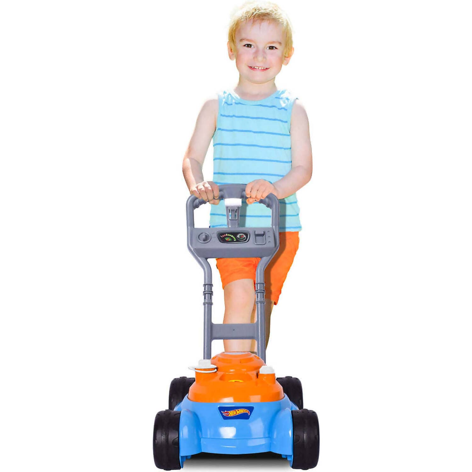 Bring outdoor play to life with the Hot Wheels Bubble N Go Mower, a vibrant push-along toy that combines imaginative fun with classic bubble-blowing excitement. Designed to resemble a real lawn mower, it features mechanical gear sounds and a bold Hot Wheels aesthetic that will thrill young racers. Simply fill it with the included bubble solution, push it along, and watch a stream of bubbles burst into action.