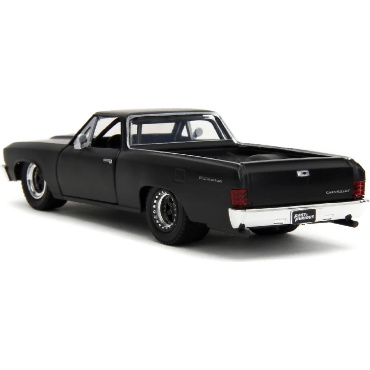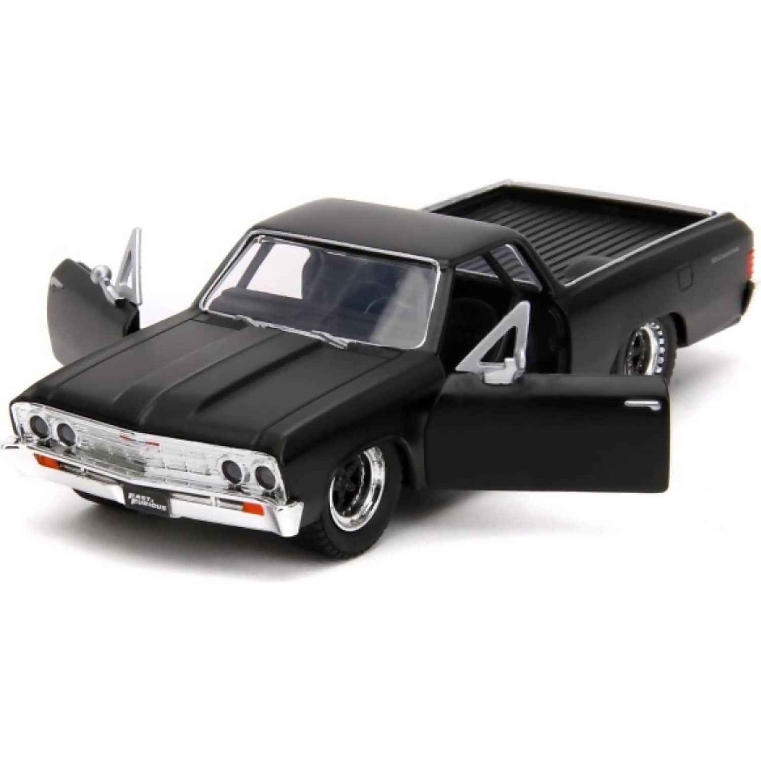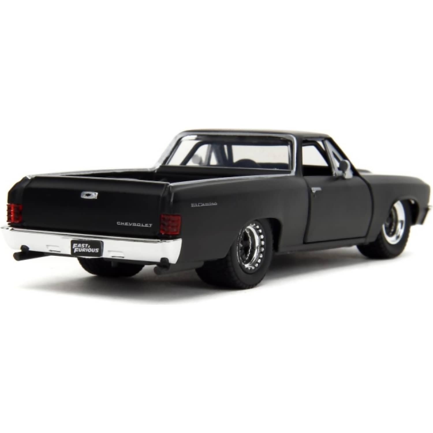Crafted from diecast metal with plastic components, the model features opening doors and a detailed interior. Real rubber tyres and free-rolling wheels enhance its realism and play value. Whether displayed on a shelf or used to recreate cinematic scenes, this El Camino delivers muscle, attitude, and movie-accurate flair.