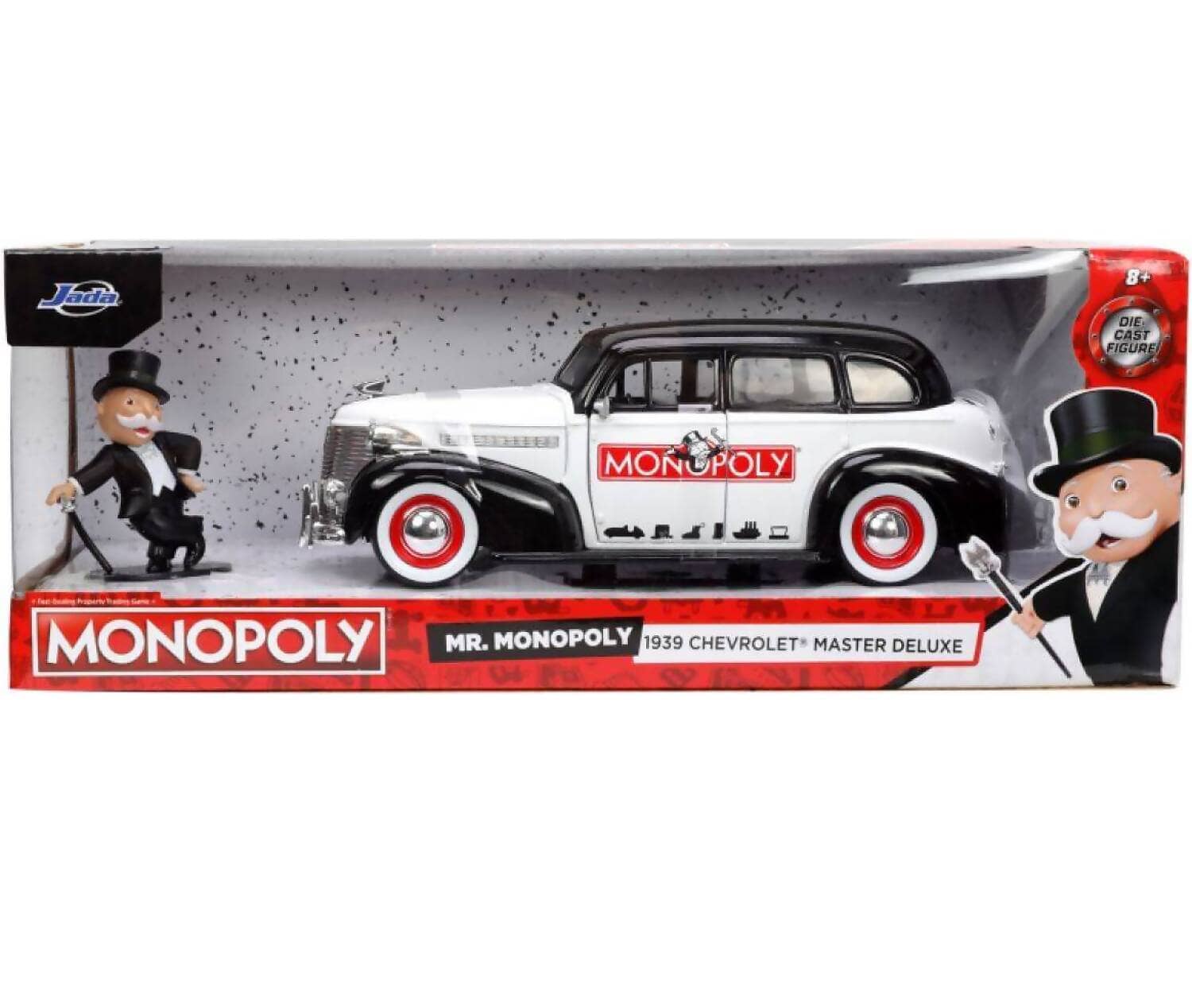 - Includes 1:24 scale 1939 Chevy Master Deluxe and Mr Monopoly figure