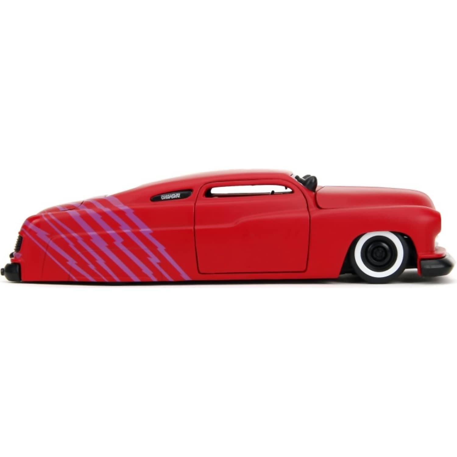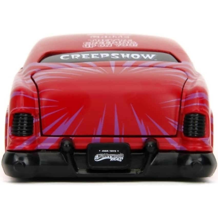 Step into the eerie world of horror cinema with the Hollywood Rides 1951 Mercury, recreated in 1:24 scale by Jada Toys. This officially licensed diecast model features a sinister red and purple striped finish inspired by the cult classic Creepshow. Paired with a 2.75 Creep figure, it captures the macabre charm of the anthology series with collector-grade detail.