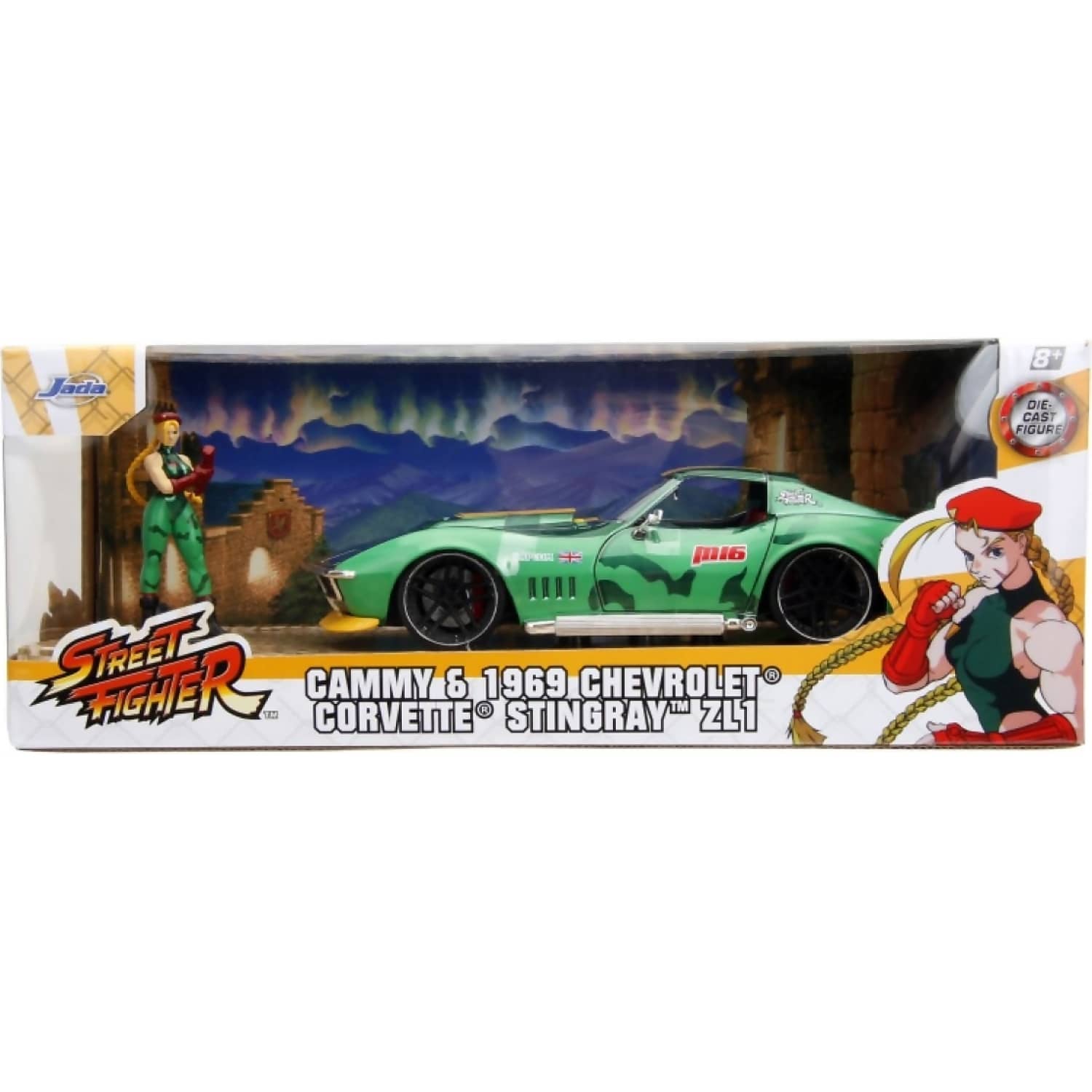 Jada Toys – Street Fighter 1969 Chevrolet Corvette Stingray ZL1 With Cammy Figure 1:24 Scale Diecast Vehicle Figure Set