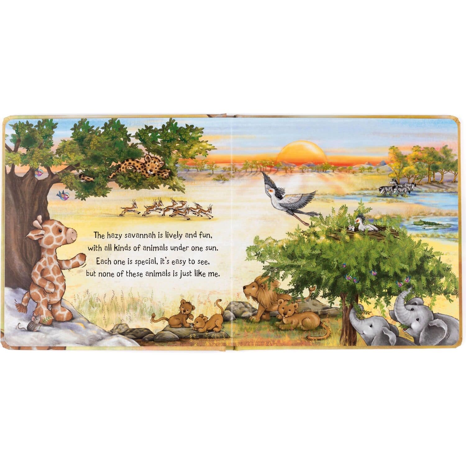 Just Like Me is a joyful tale, celebrating what makes us different! When a young giraffe looks around her home, she sees lots of animals living different lives, but they all have one thing in common… they love to snuggle up with their family.