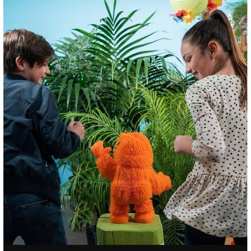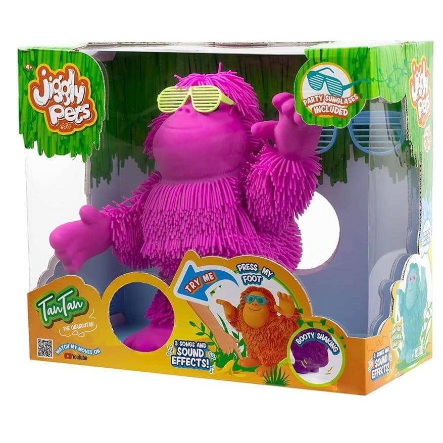 TAN-TAN THE ORANGUTAN : This bright pink Tan-Tan Jiggly Pet comes with full body movement, jungle tunes, and sound effects. Tap his head to bring him to life. Tan-Tan comes with super stretchy and soft TPR hair your little one will love its texture and bounciness.