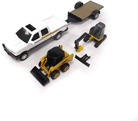 Includes 4-piece set includes pickup with flatbed trailer, skid steer and mini excavator (4.5 L x 2.75 H)