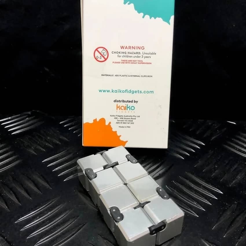 This silver infinity fidget cube is awesome. Comes in a lovely storage box.  It  magically folds over and over on itself.