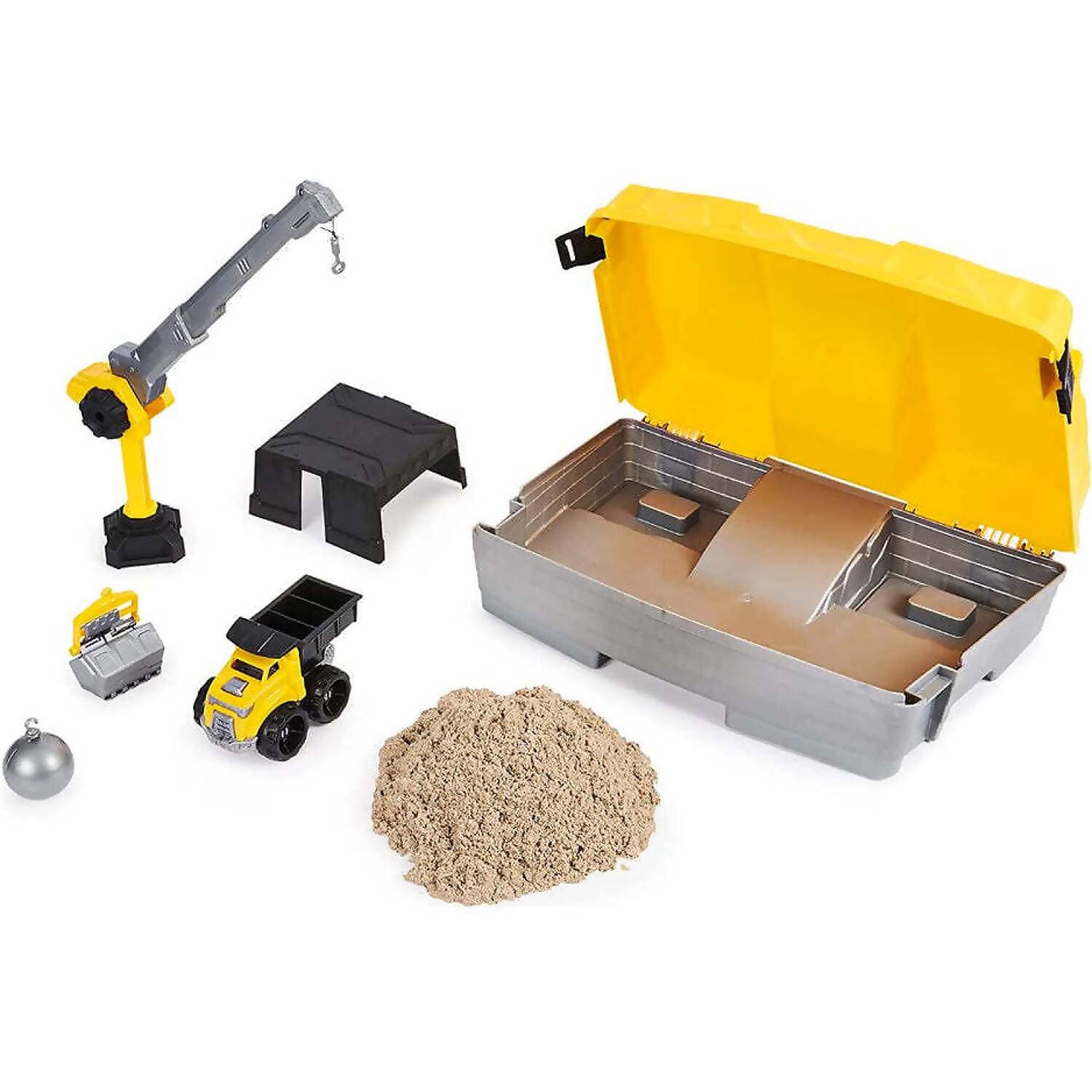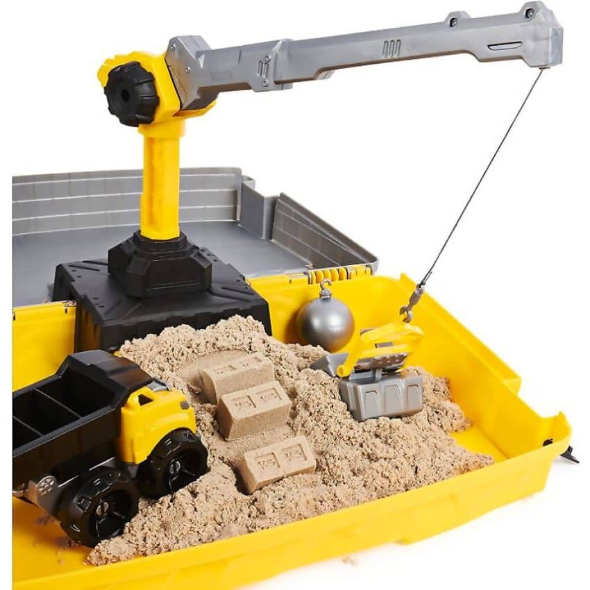- WORKING CRANE: With help from the Construction Site`s crane and 2 attachments, you can dig, build and crush! Hook the sand bucket on to dig and move Kinetic Sand, then demolish with the wrecking ball!