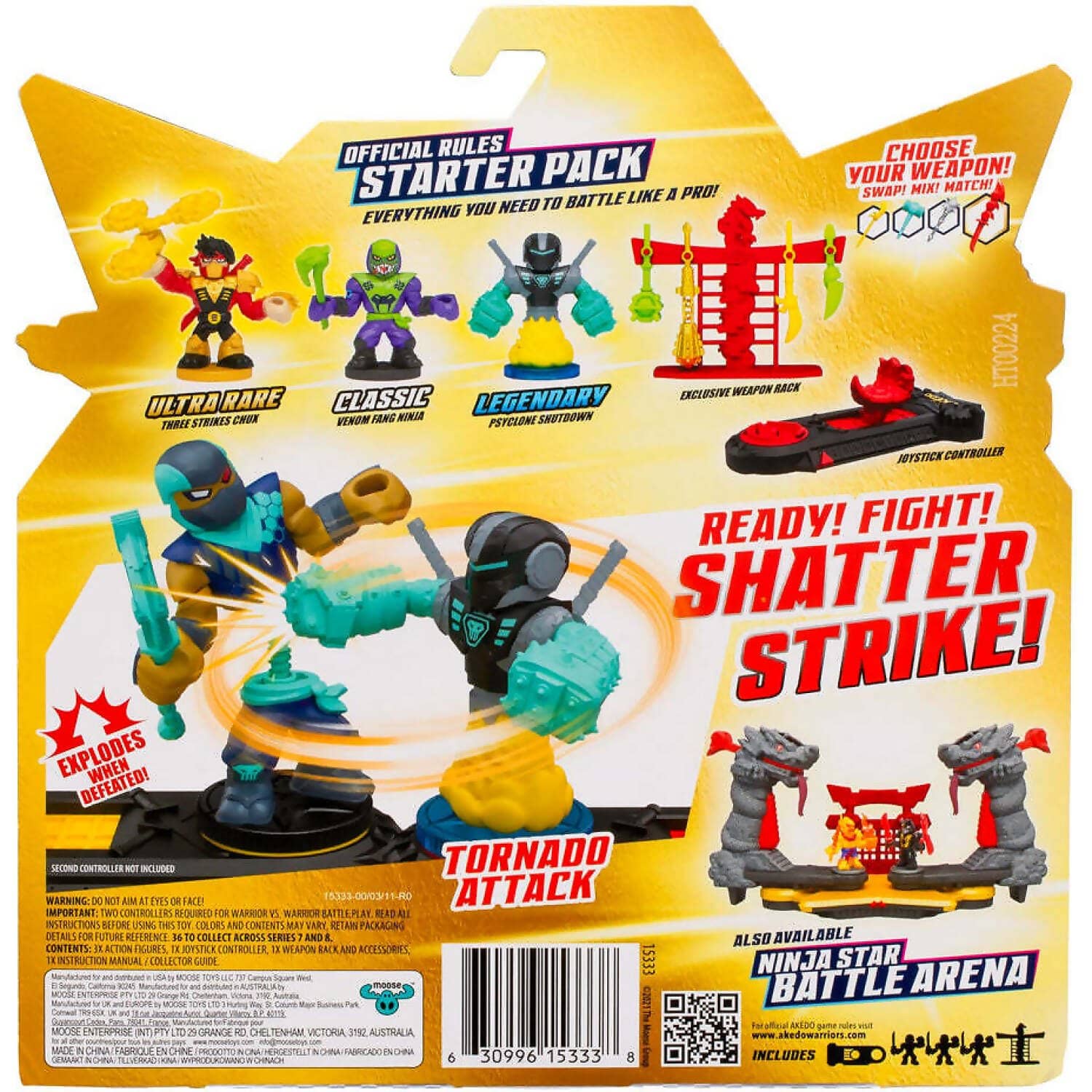 Be prepared for epic battles with the NEW Legends of Akedo Three Strike Chux Starter Pack! This pack provides kids with everything they need to train to become seasoned Akedo masters. Dive into a world where 3 intricately designed mini battling warriors: Ultra Rare Three Strikes Chux, the fierce Venom Fang Ninja, and the formidable Legendary Warrior Psyclone Shutdown are ready for epic combat. Each of these warriors has powerful weapons including: