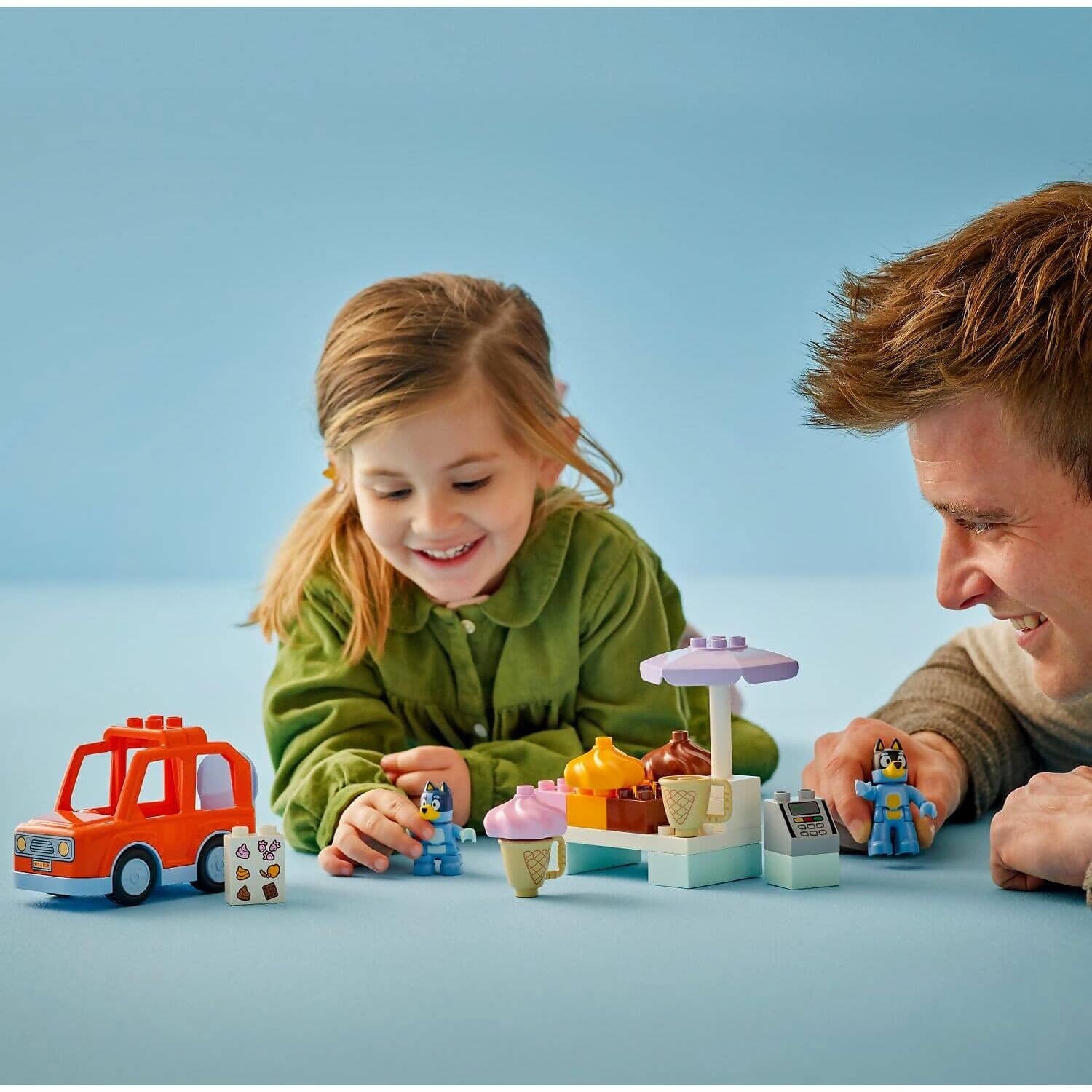 - Ice cream stand and vehicle playset inspired by the Bluey TV show – Transport preschoolers to the fun world of the Heeler family with the LEGO® DUPLO® Bluey Ice Cream Trip with Bluey toddler toy