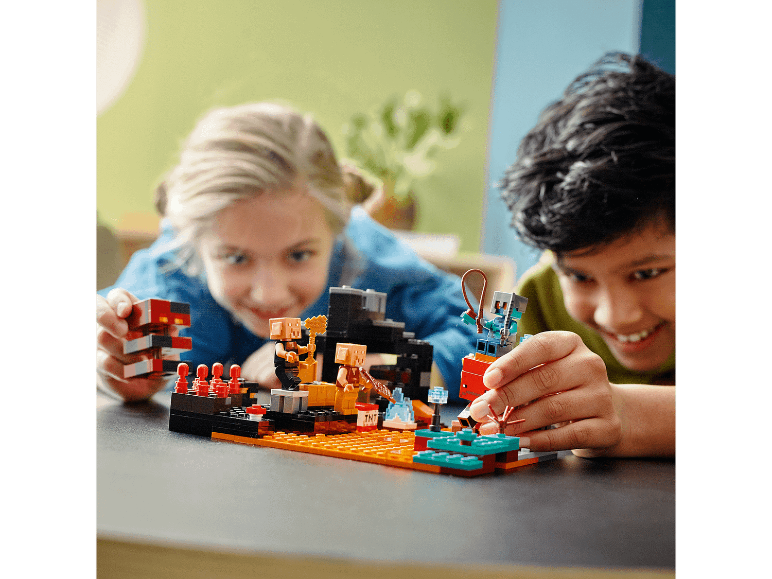 Kids aged 8 and over with a passion for Minecraft® can enjoy endless hands-on action in LEGO® Minecraft The Nether Bastion (21185).