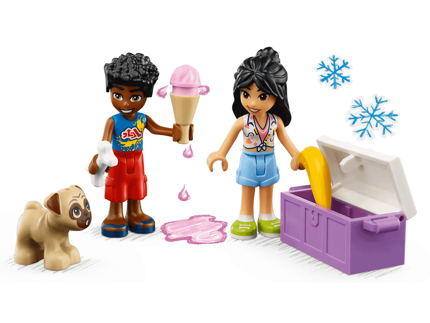 - 2 mini-dolls and accessories – The set comes with LEGO® Friends characters Liann and Zac, a pet pug character, plus a dolphin, a toy beach buggy, a cooler and a wave accessory