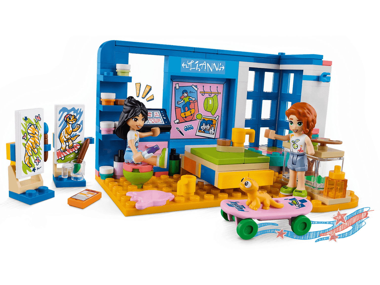 • Creative play for kids aged 6+ – Kids can build a bedroom art studio and get creative with artistic Liann and animal lover Autumn with this LEGO® Friends Liann’s Room (41739) playset