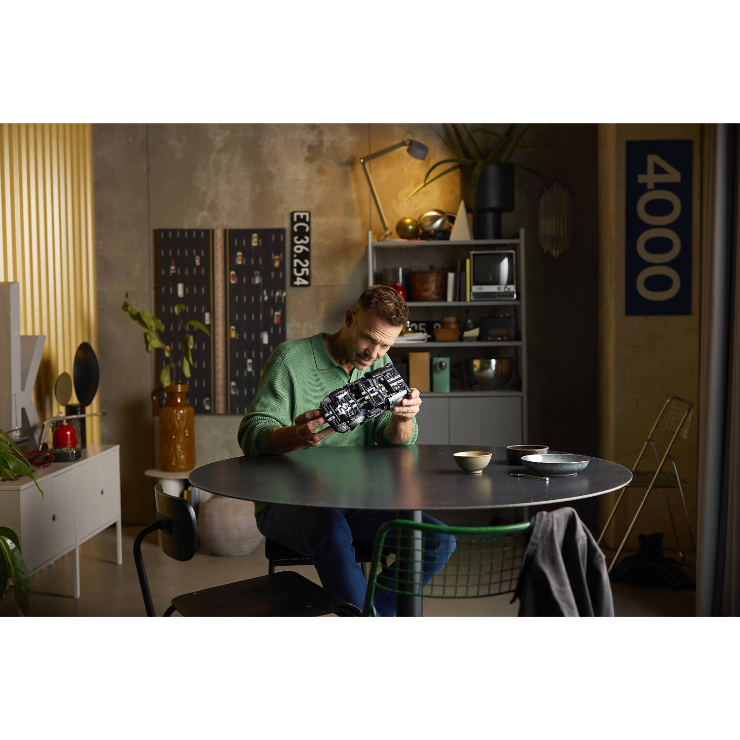 Open the engine cover to reveal the V8 engine, then use the lever inside to open the hood. After you’ve built it, you can proudly display your race car in any room or office. Drive your desire for high-performance vehicle building kits with therange of LEGO Technic collectible cars for adults.