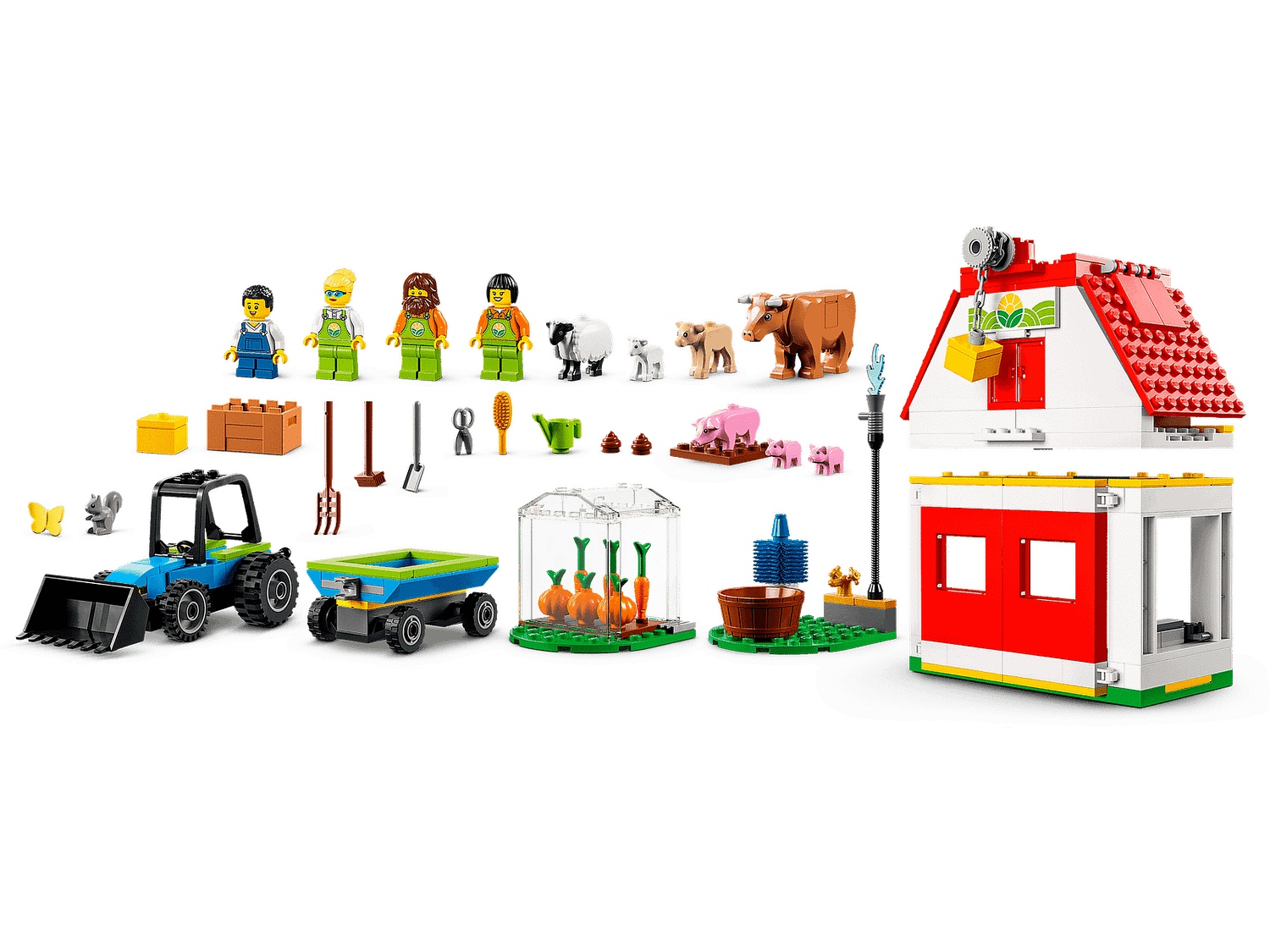 • What’s in the box – All kids need to create a toy barn, greenhouse, tractor, trailer and 4 minifigures, including a LEGO® City TV character, plus squirrel, sheep, lamb, pig, piglet and cow figures