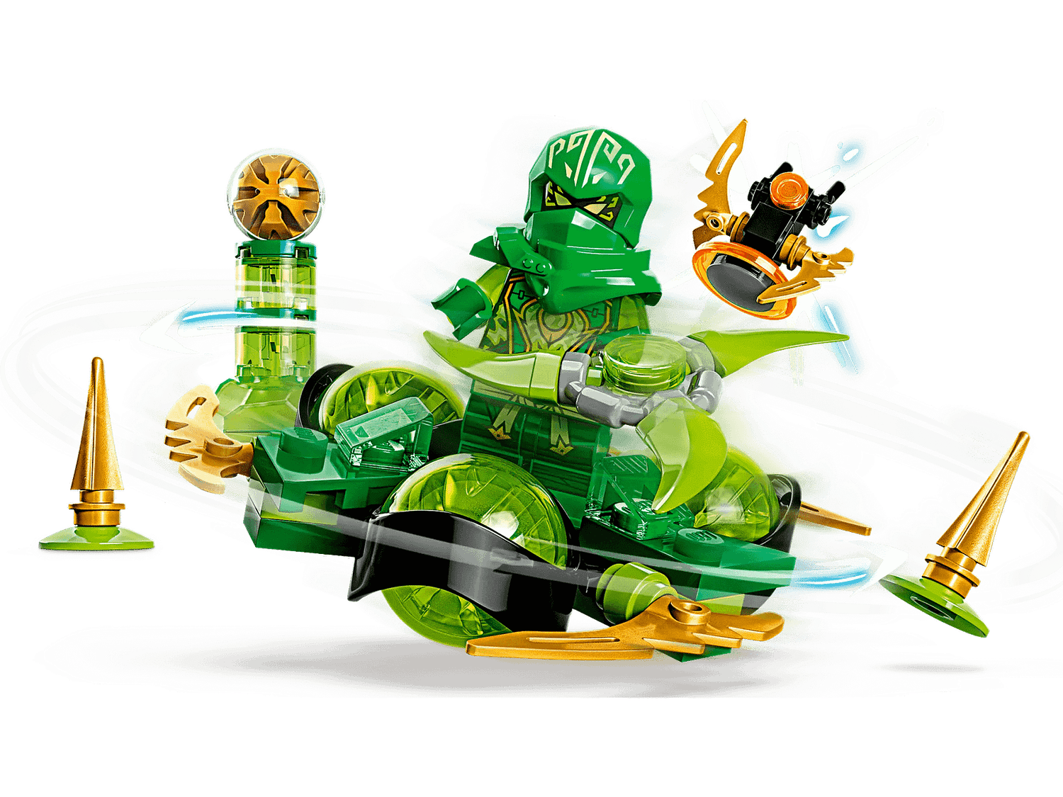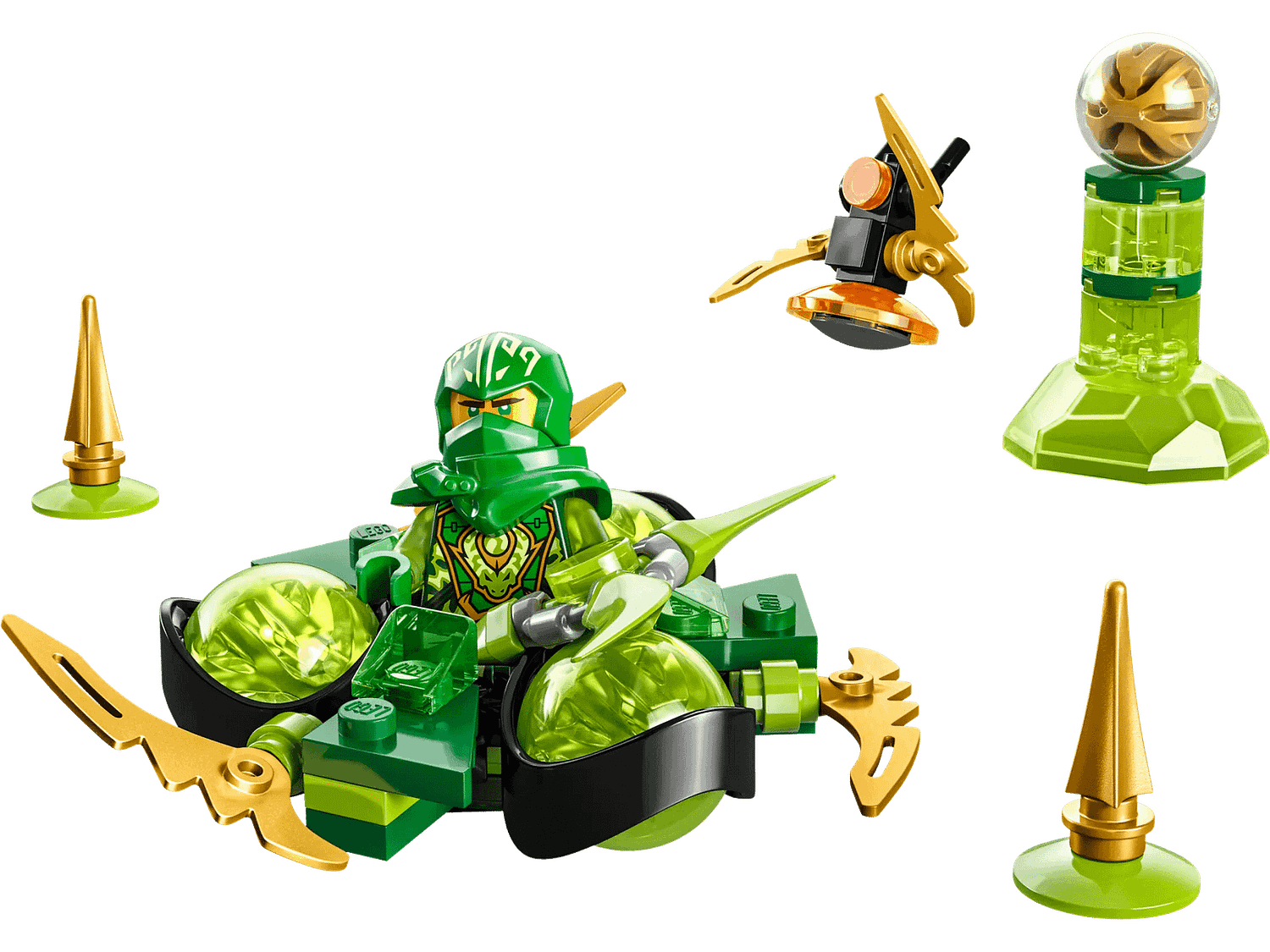 - Spin toy – Kids can place Dragon Power Lloyd inside the spinner adorned with 3 exclusive green dragon power elements, spin it and watch as he quickly rotates and performs different tricks