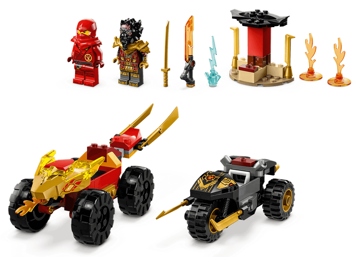 - Beginner LEGO® set – Kids aged 4+ can recreate action from the NINJAGO® Dragons Rising TV series as they learn to build with Kai and Ras’s Car and Bike Battle (71789) playset